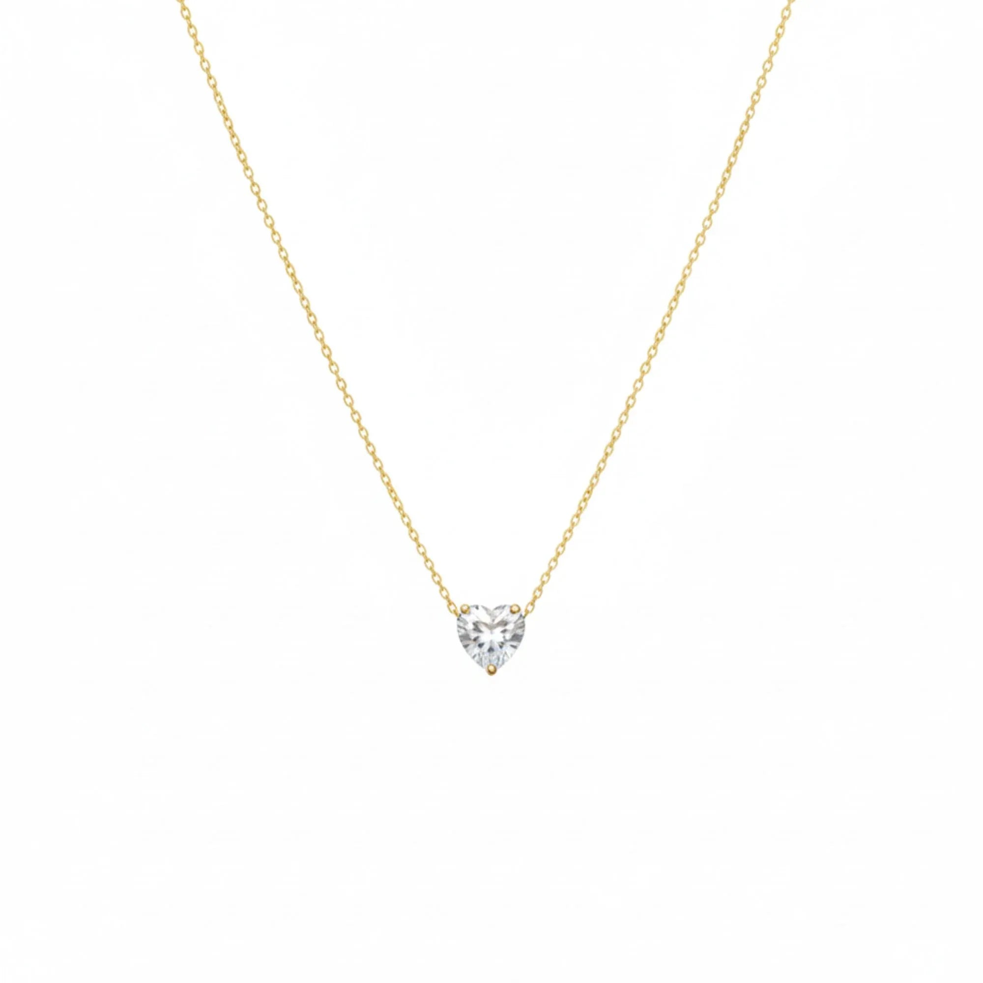 18K gold plated stainless steel necklace featuring a brilliant heart-shaped white zircon stone; premium daily wear jewellery.