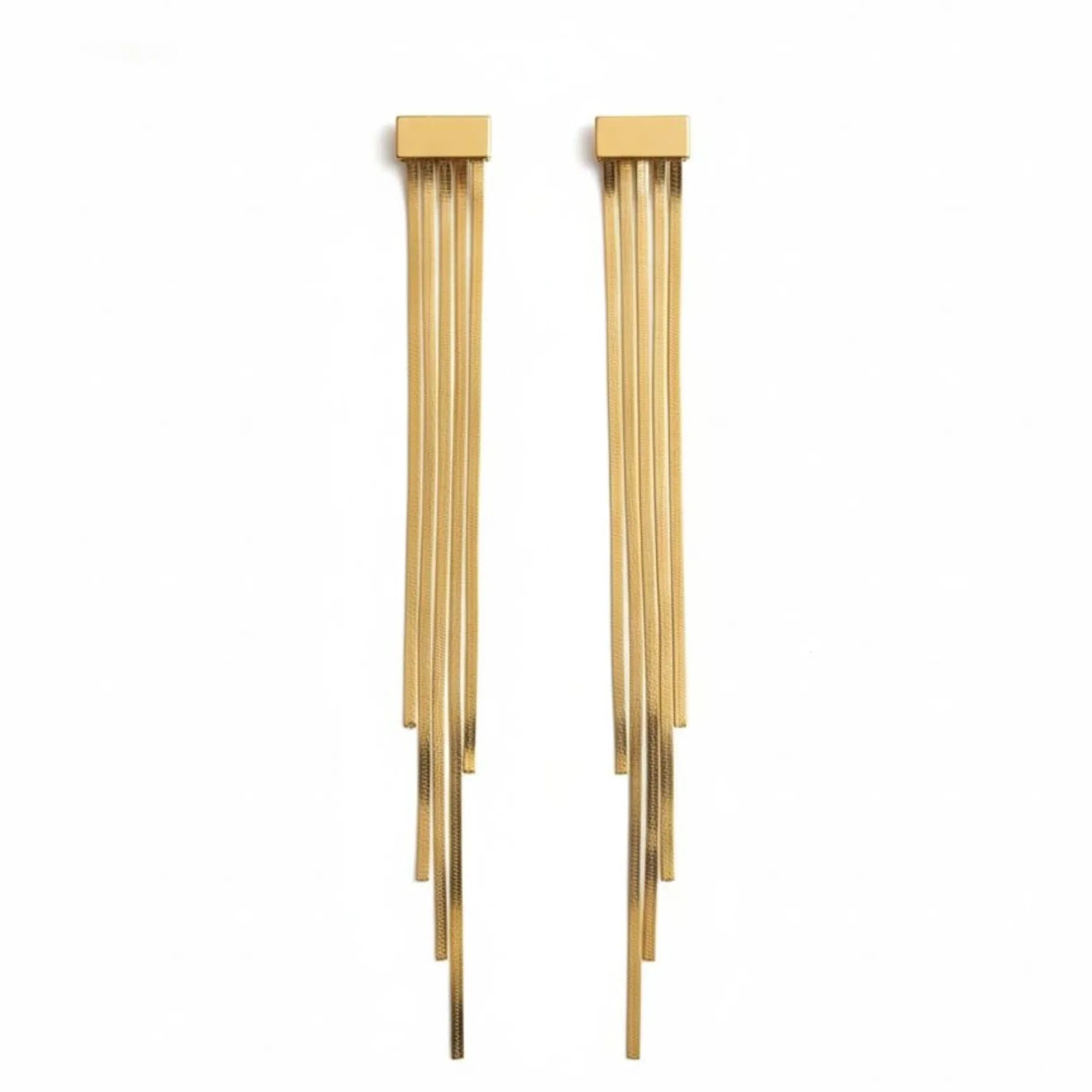Modern statement long bar chain earrings crafted in 18K gold plated stainless steel. Lightweight, bold and perfect for party & evening looks.