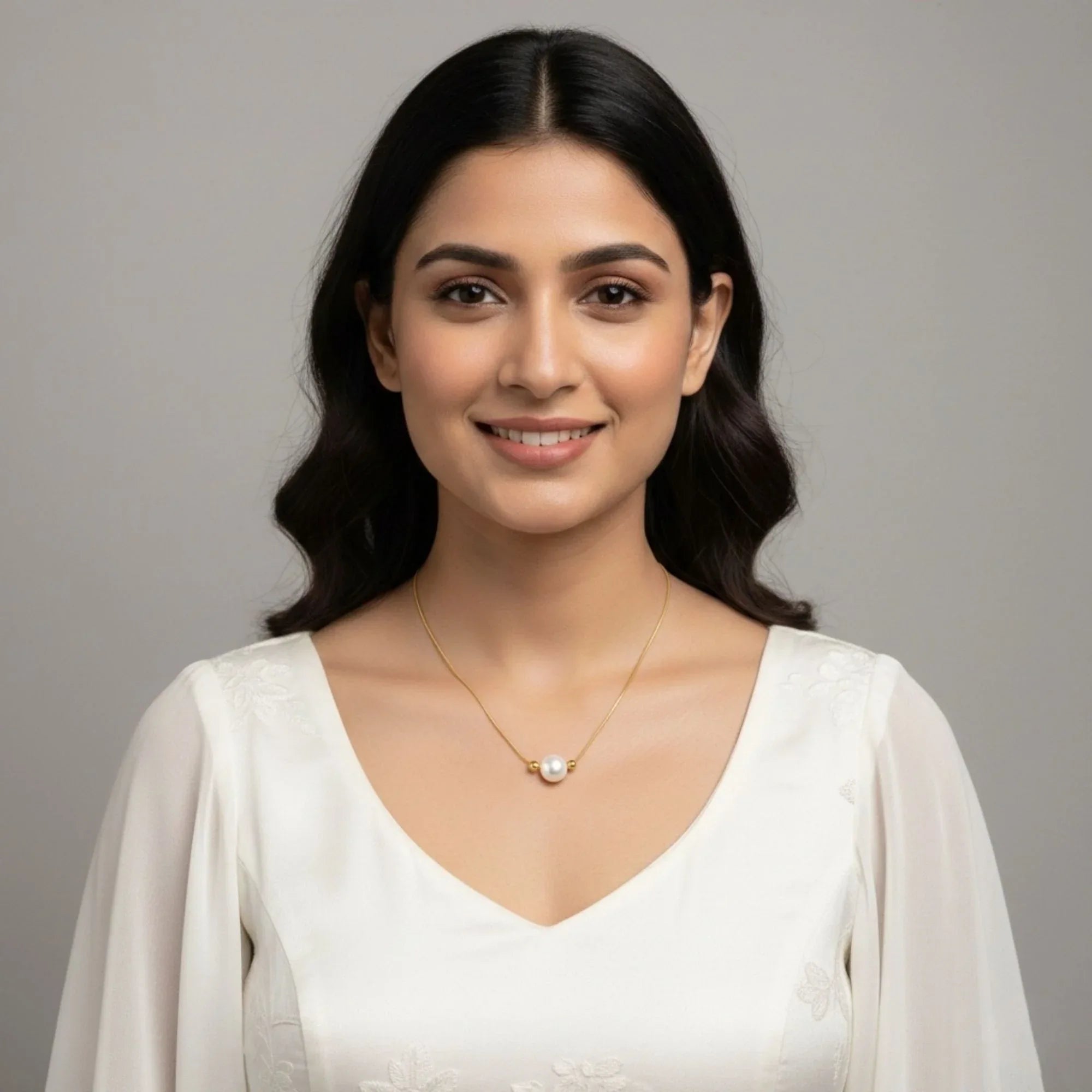18K Gold Plated minimal pearl necklace crafted in premium stainless steel featuring a single statement pearl centrepiece accented with gold beads on both sides. A timeless everyday essential perfect for office wear, brunch styling and elegant gifting.