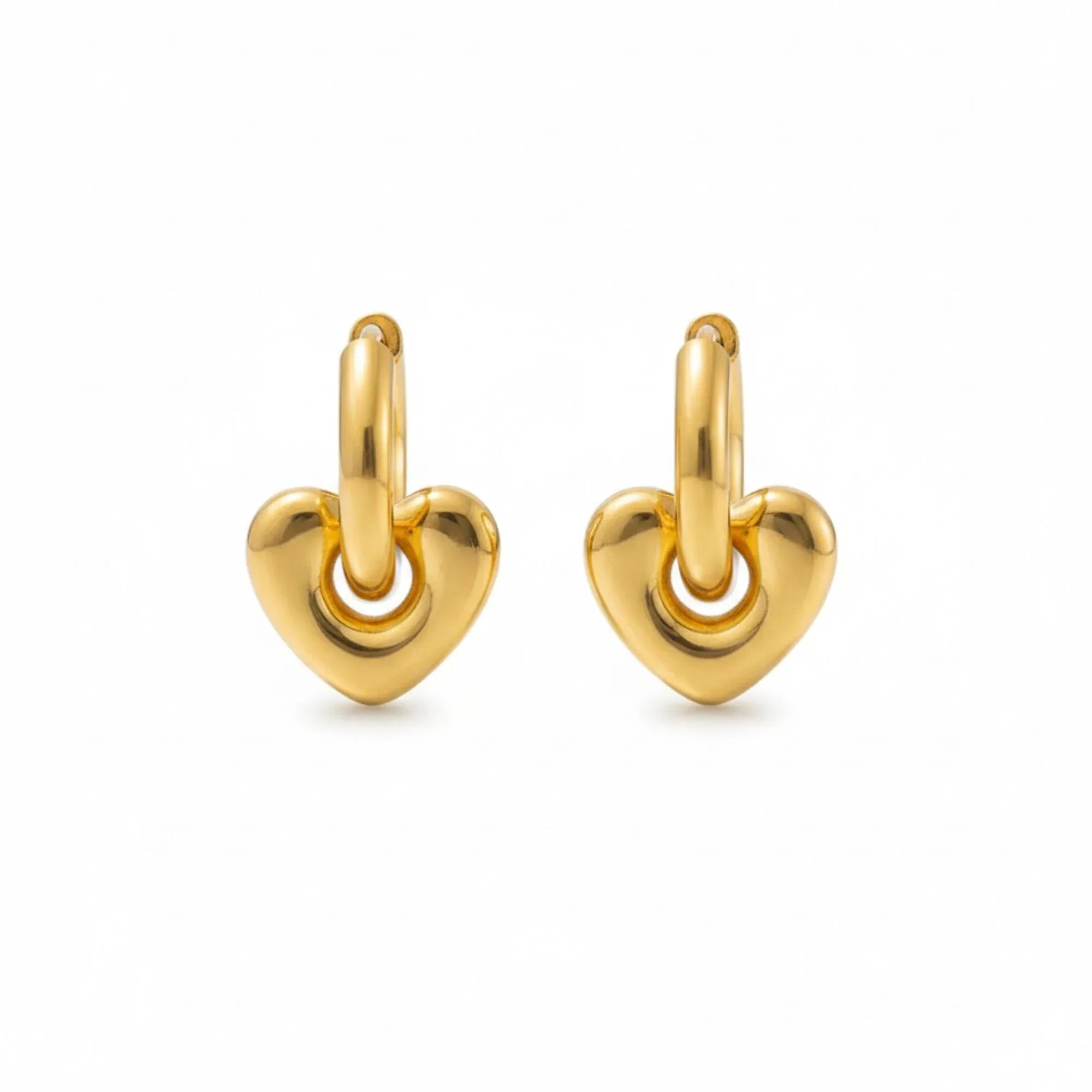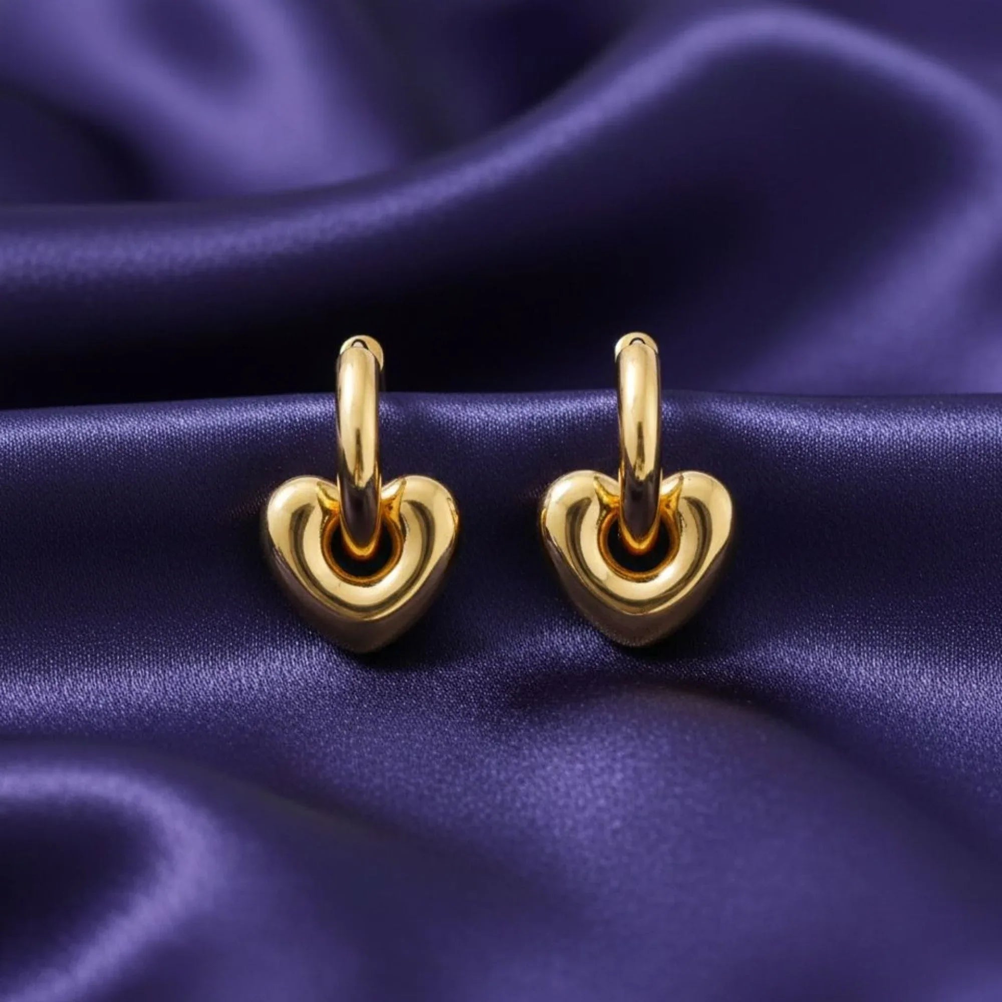 Charming 18K gold plated stainless steel earrings with glossy puffy heart drops for a romantic statement.