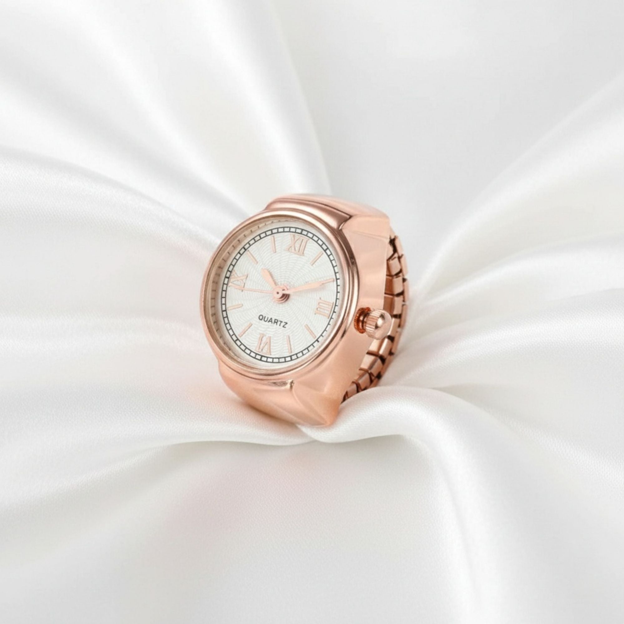 18K Quartz Finger Ring Watch - Rose Gold (Roman Numeral Dial)
