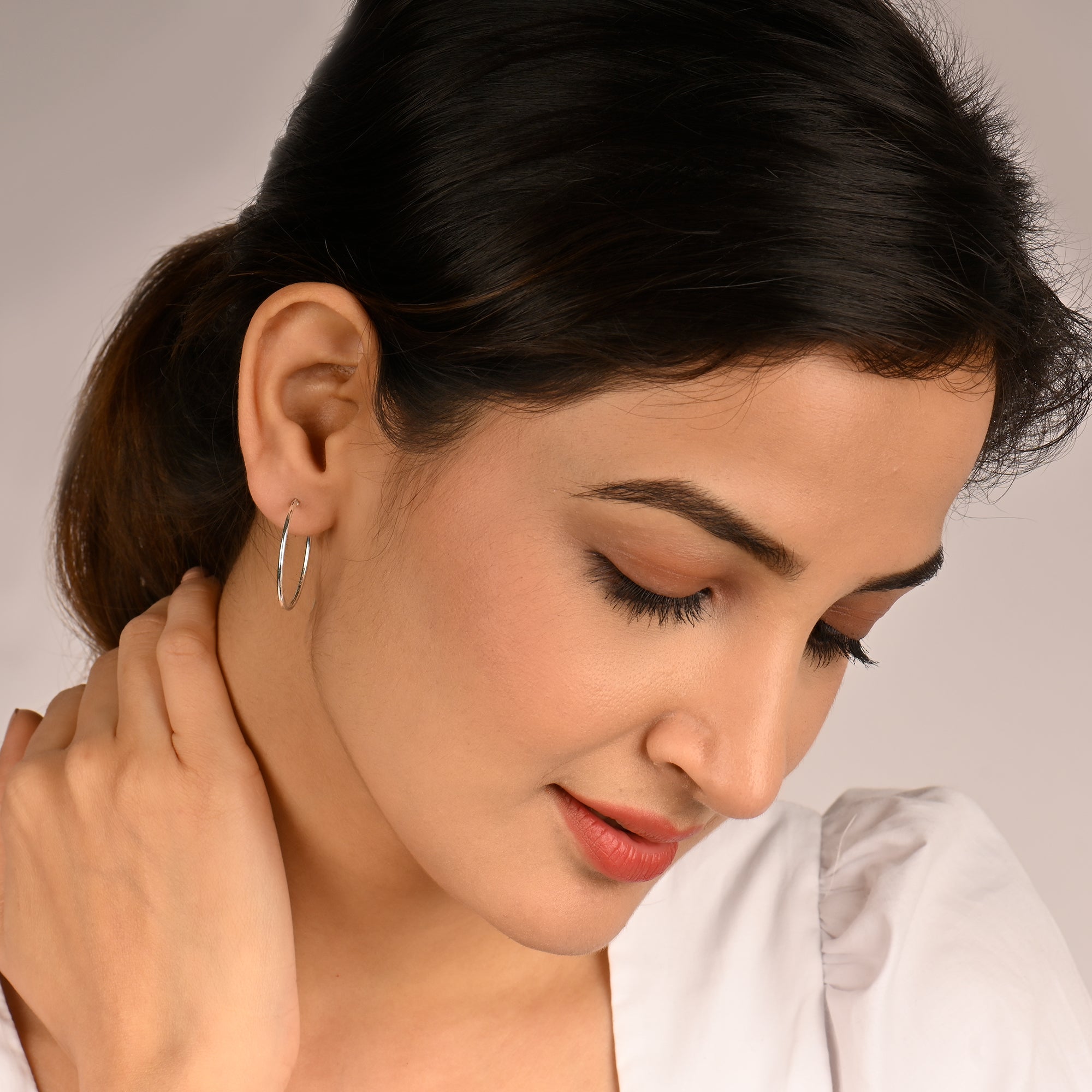 Meticulously crafted with 925 sterling silver, Rachiva's Circlet Silver Hoop Earrings promise a flawless finish that radiates sophistication. The lightweight hoops ensure comfort while maintaining a premium look. Whether it's a birthday celebration or an anniversary, gift yourself or a loved one a touch of enduring grace with this beauty. Their understated charm adds a touch of refinement to any outfit, effortlessly transitioning from day to night.