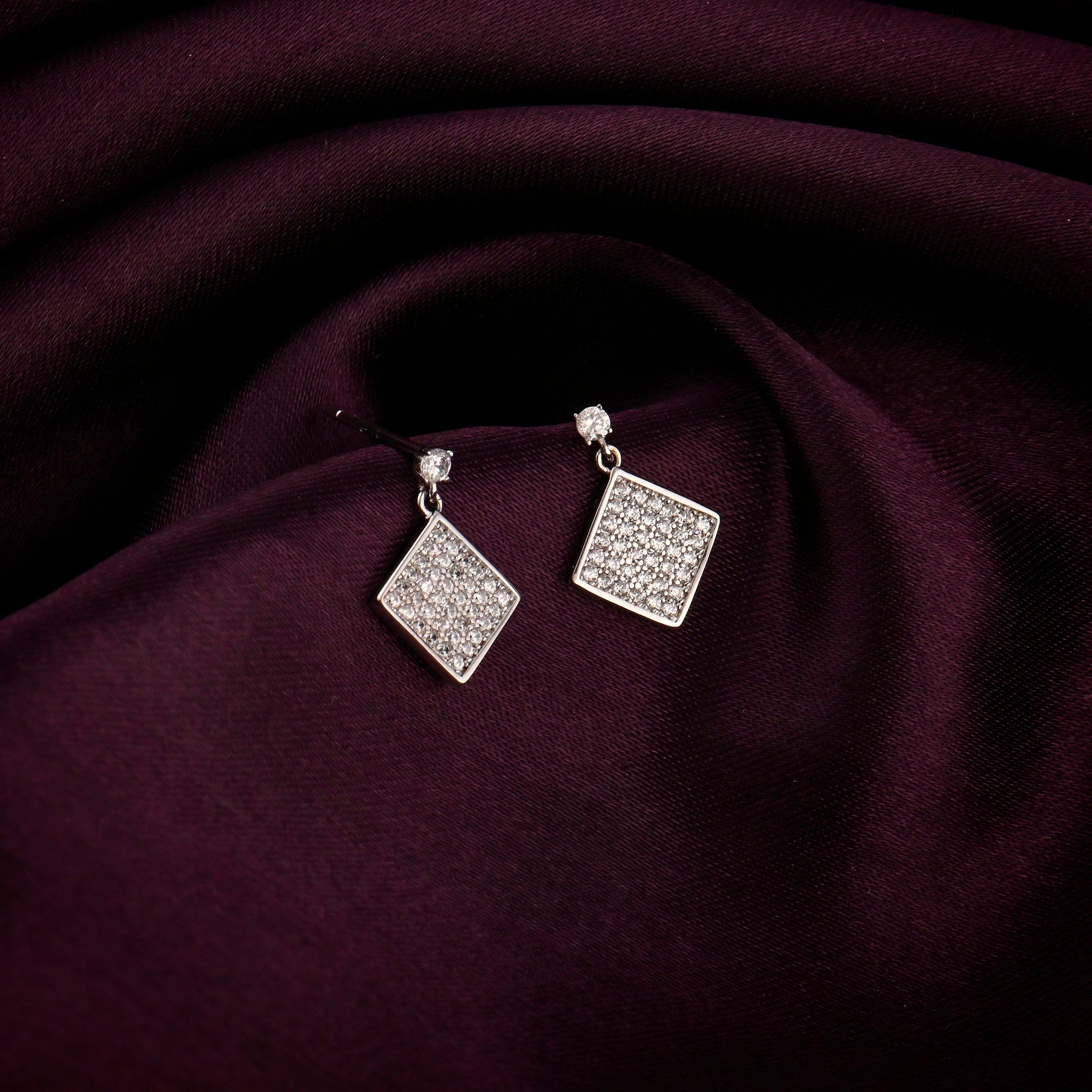 Unveil the essence of classic sophistication with Rachiva's Dazzling Diamond Essence Zircon Studs. The mini diamond shape design, fully embellished with Zircon stones, exudes a sense of timeless charm. A single Zircon stone crowns the top, adding a touch of glamour to this versatile piece. The premium 925 sterling silver ensures a lasting shine, making them a staple in your jewellery collection. Enhance your daily attire with these earrings, whether you're heading to the office or enjoying a casual day out.