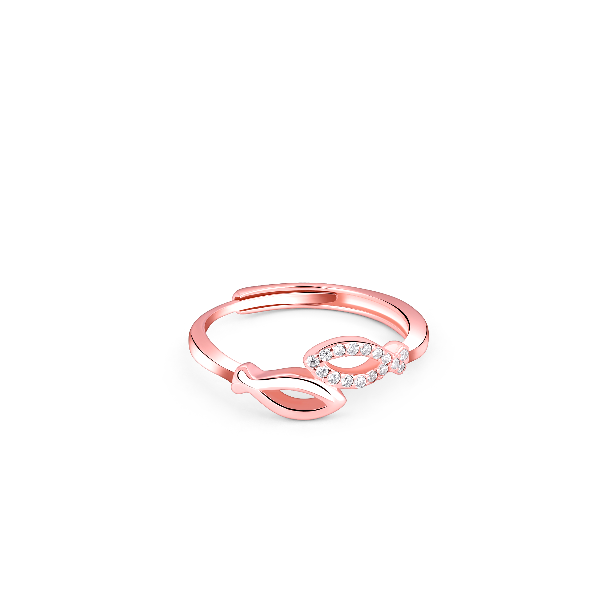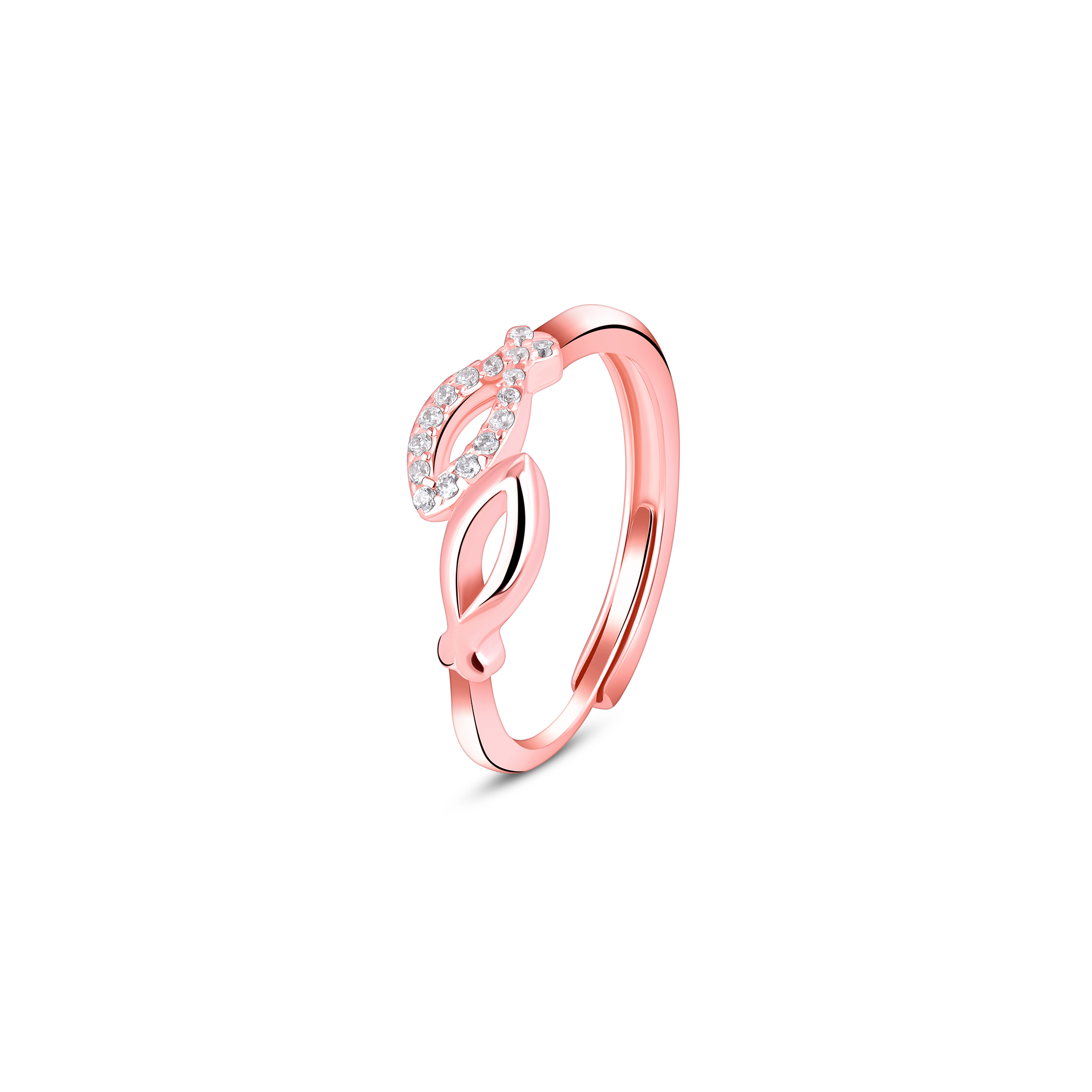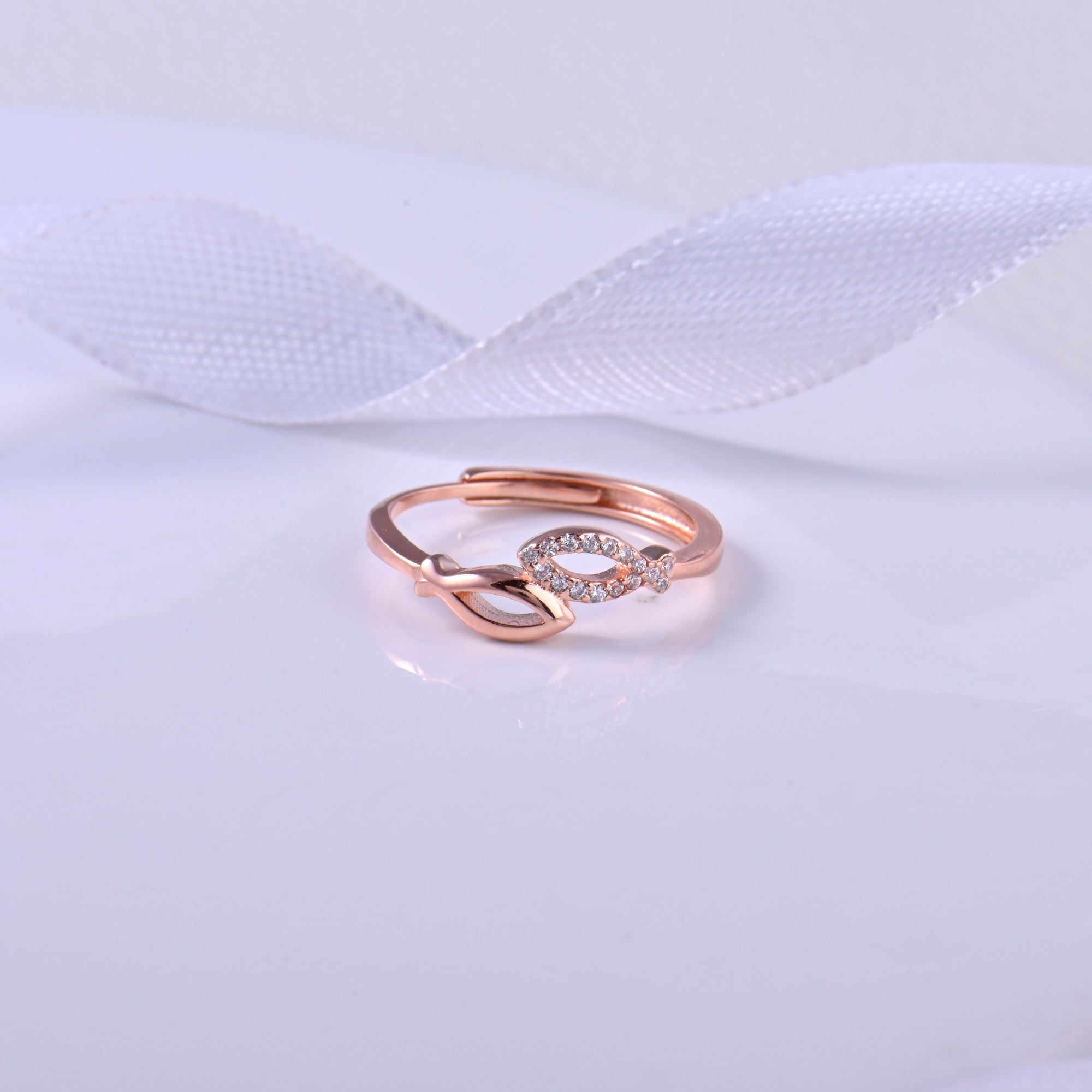 Make a statement that reflects your unique personality with Rachiva's Entwined Love Rose Gold Ring. Immerse yourself in the beauty of this unique piece, featuring two gracefully intertwined fish shapes in rose gold, symbolizing unity and balance. Meticulously crafted from 925 sterling silver, this ring exudes sophistication with a touch of playfulness. The premium finish ensures a smooth and comfortable fit, making this ring not just a statement piece but also a joy to wear.