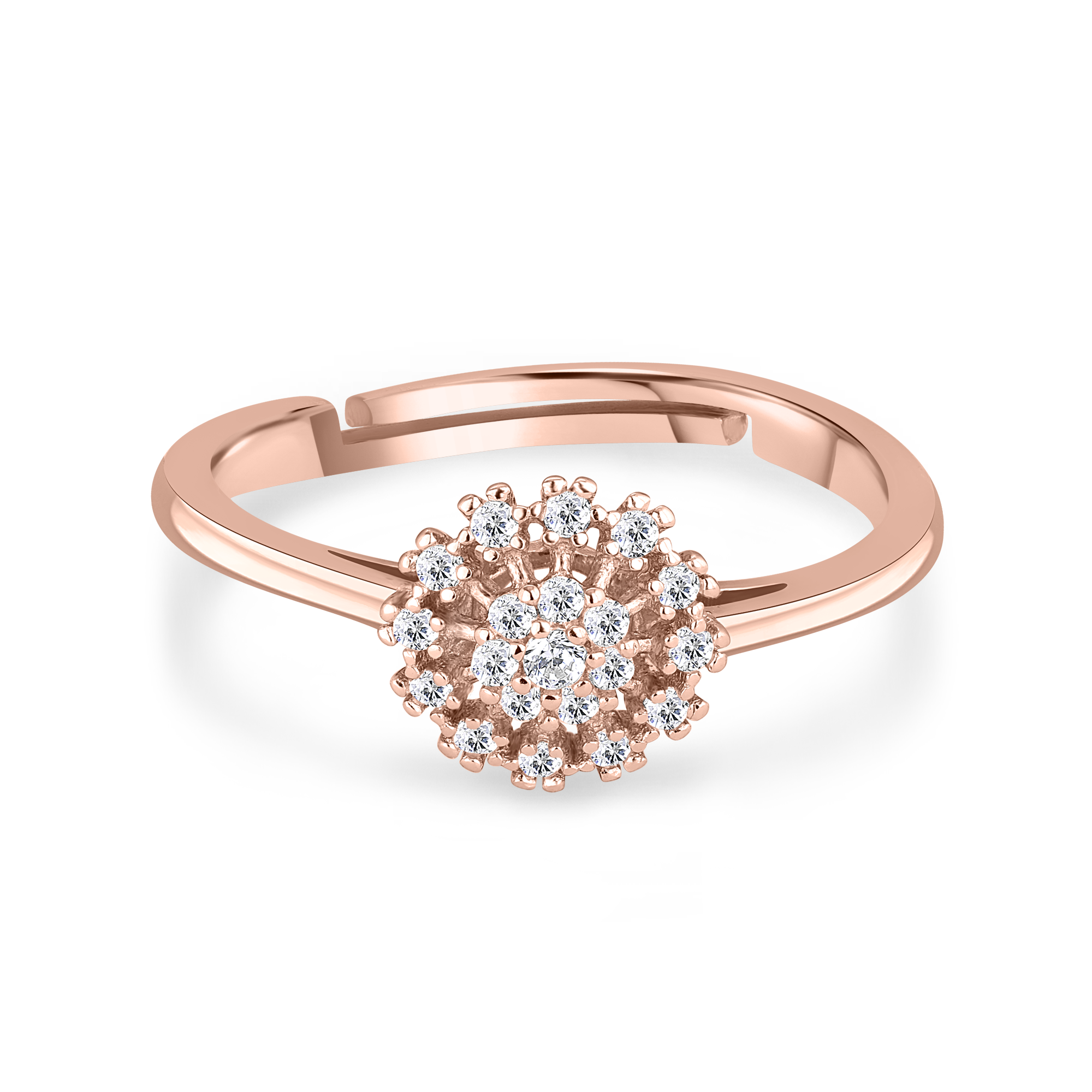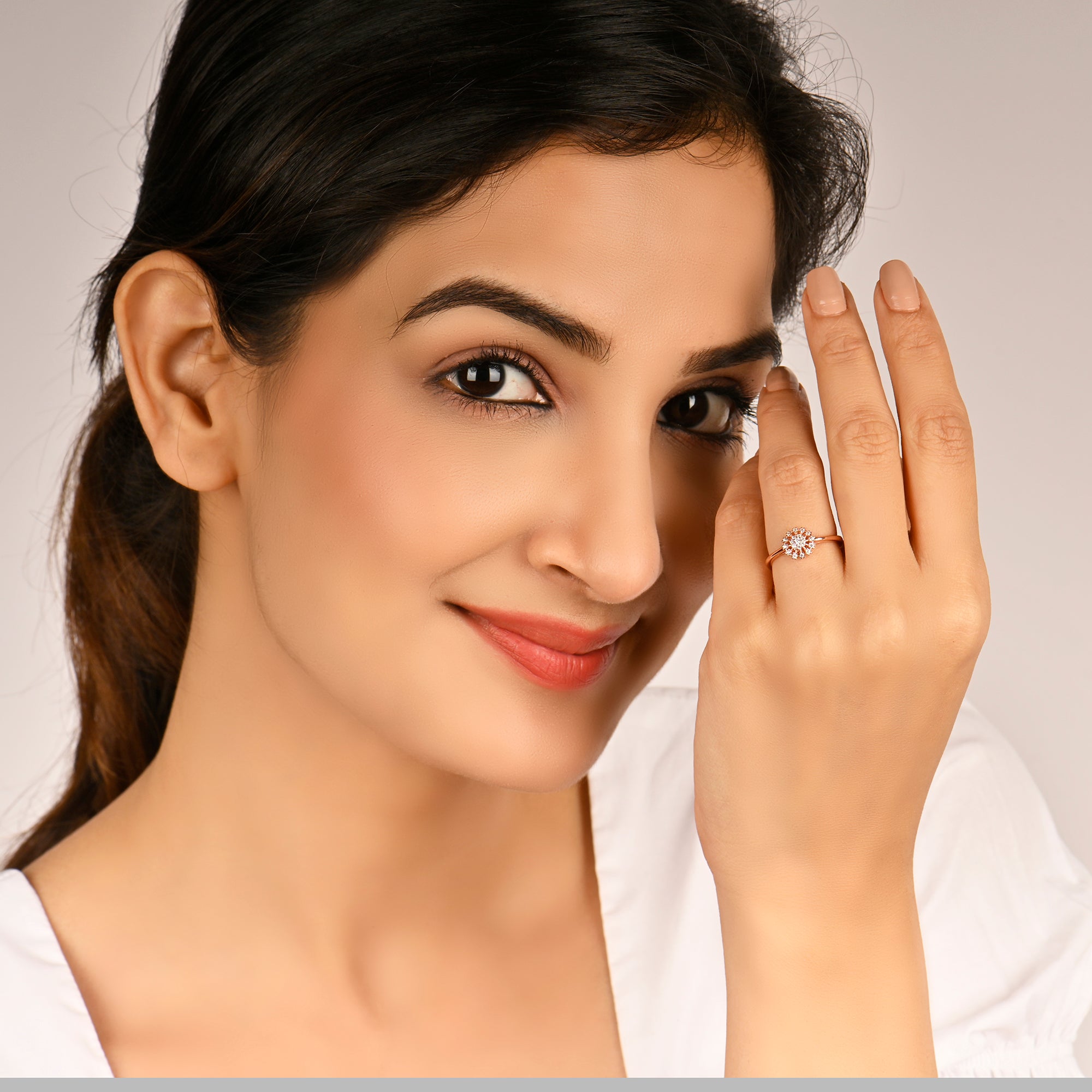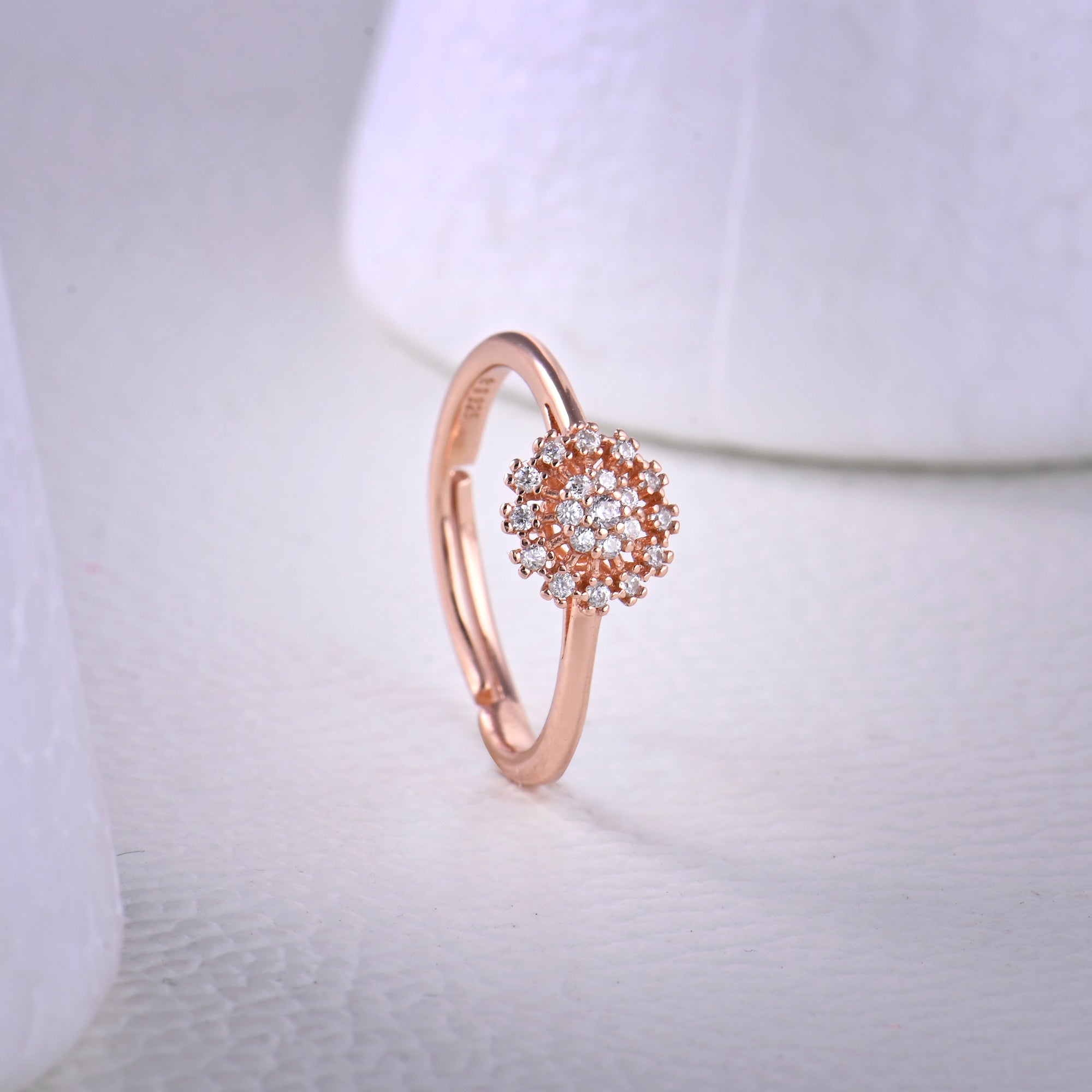 Indulge in the beauty of nature-inspired design with Rachiva's Flora Zircon Rose Gold Ring. Meticulously crafted in 925 sterling silver, this stunning flower-shaped ring features Zircon stones scattered artfully in various directions, creating a mesmerizing effect. The detailed finish of this piece embodies the brand's commitment to luxurious jewellery. Make a bold statement by wearing this gorgeous ring as a standalone piece.