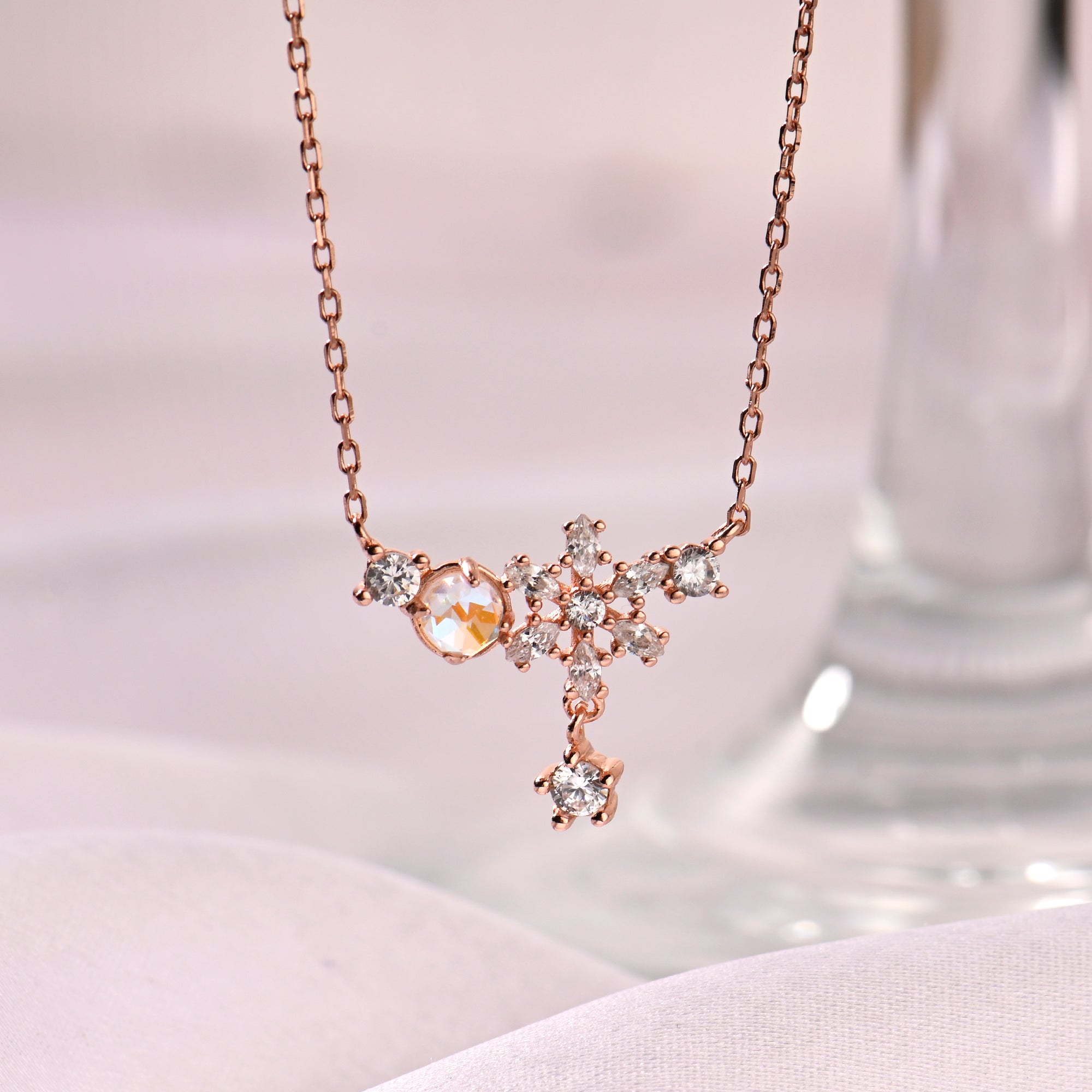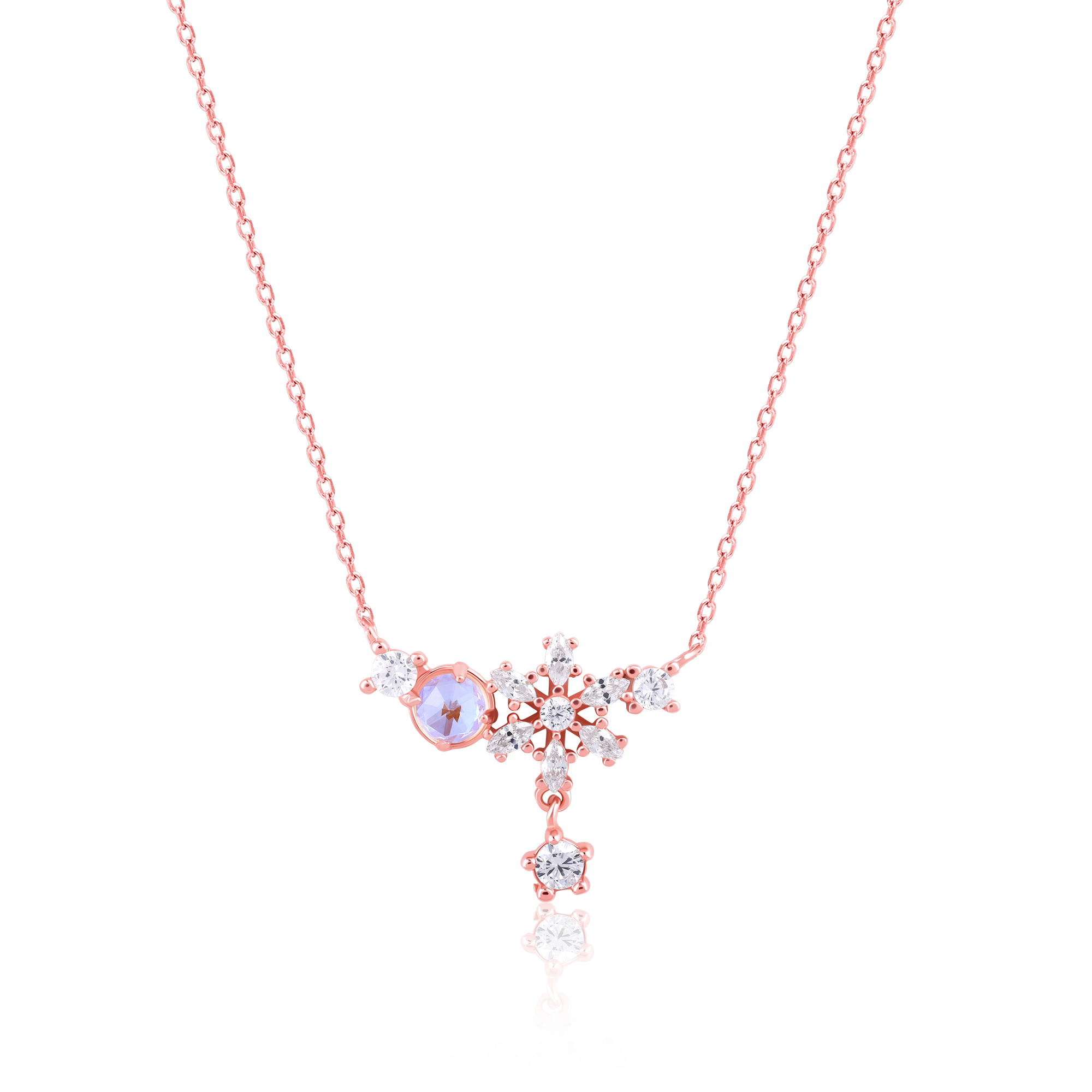 Floral Rose Gold Pendant with Link Chain