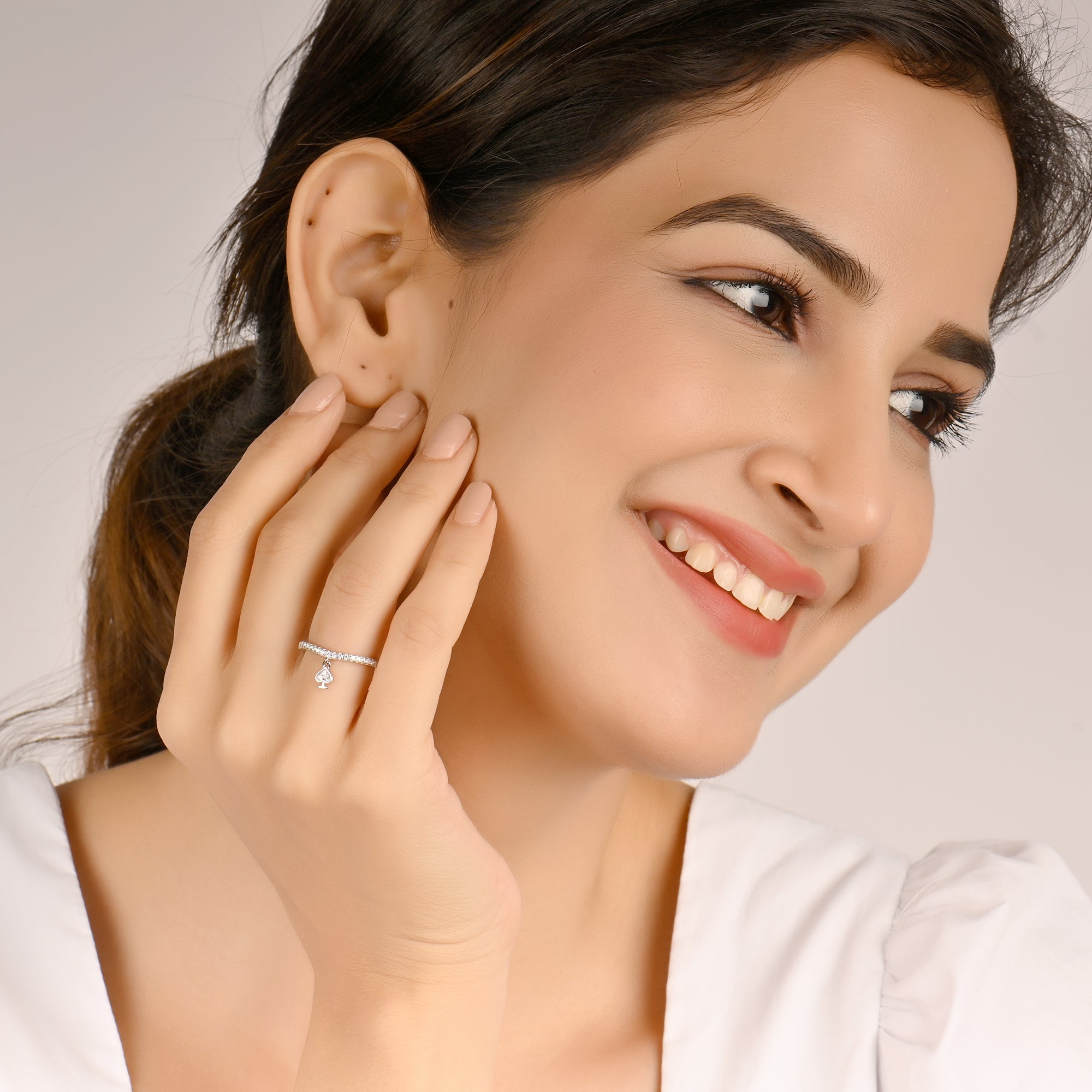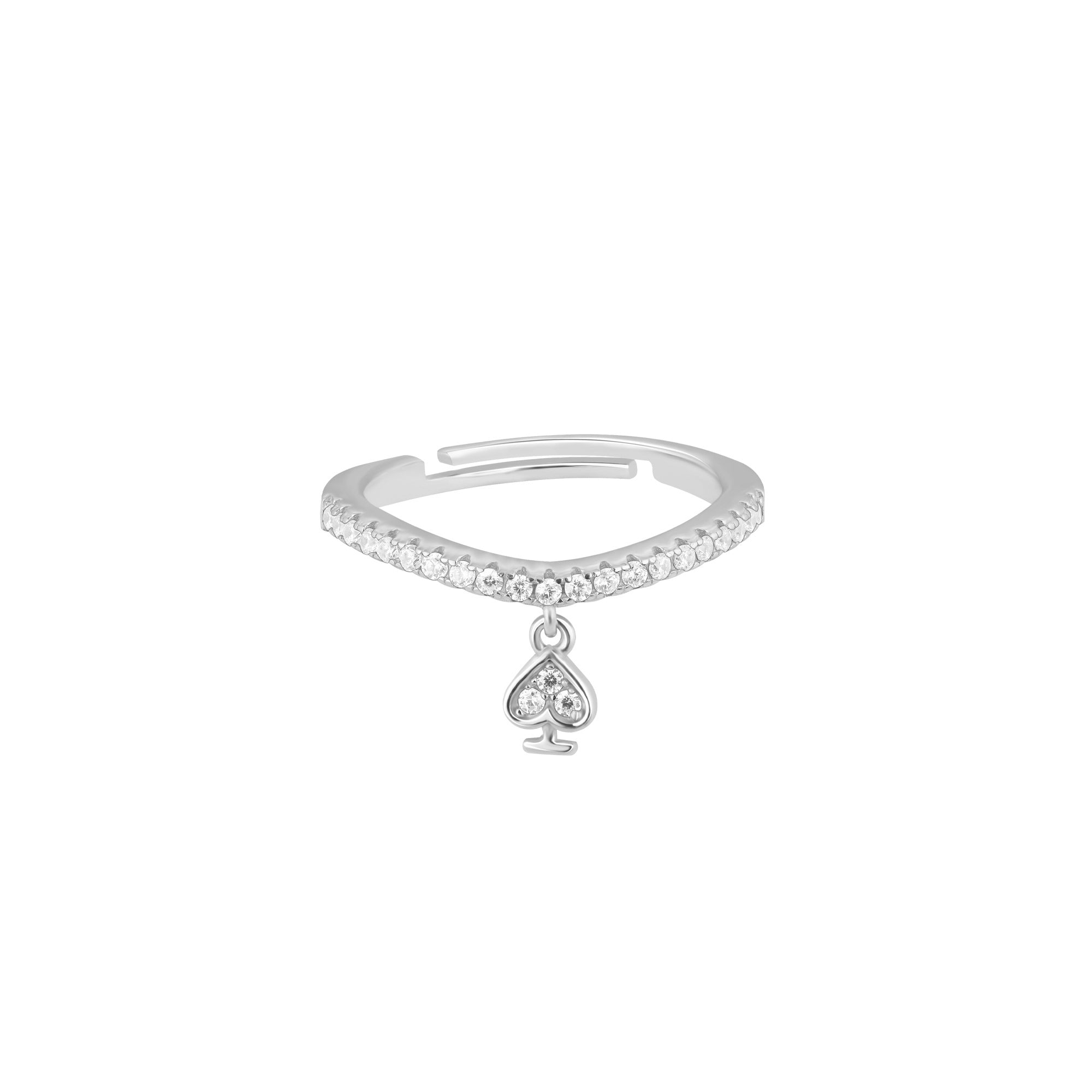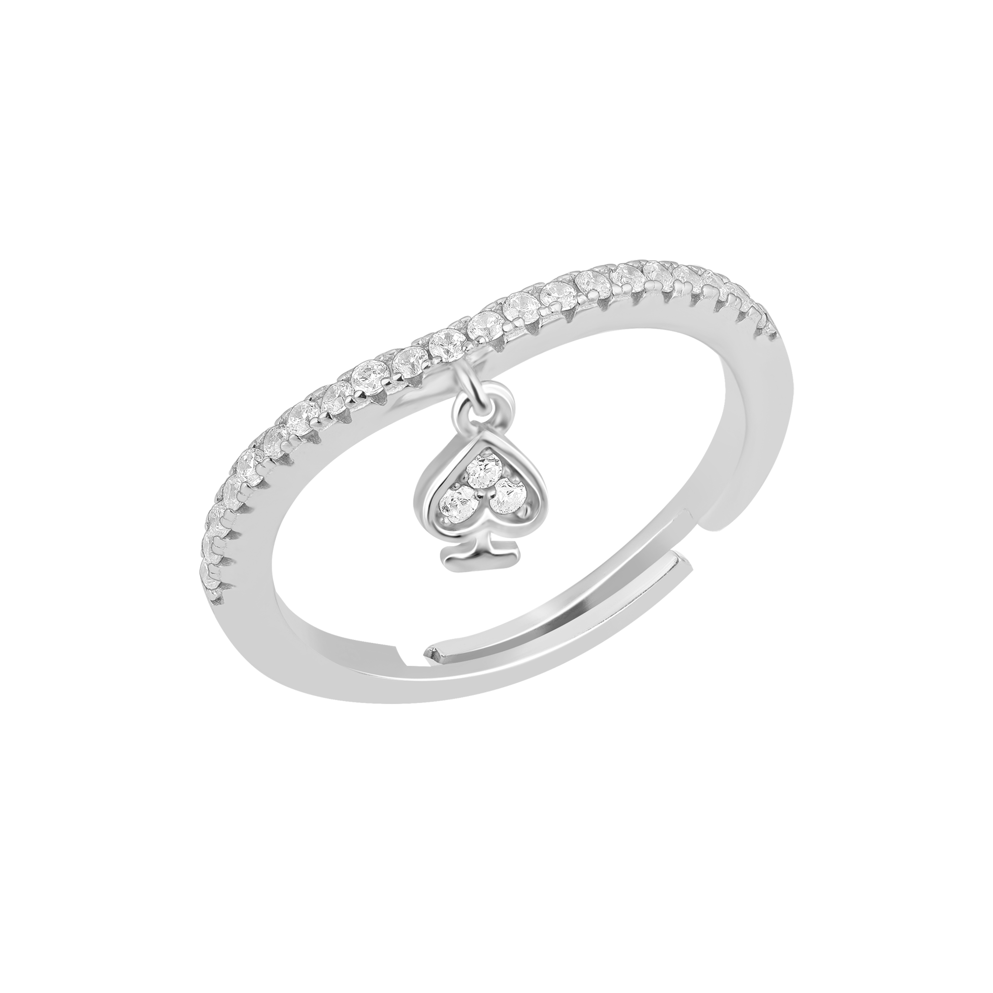 A symbol of love and elegance - Rachiva's 925 sterling silver Love Spade Sparkle Silver Ring. The delicate ring band sparkles with Zircon stones, while a charming spade-shaped charm steals the spotlight. The spade, also adorned with dazzling Zircon stones, adds a subtle yet glamorous touch to this masterpiece. The silver finish speaks of timeless beauty, making it the perfect gift for your wife or girlfriend.