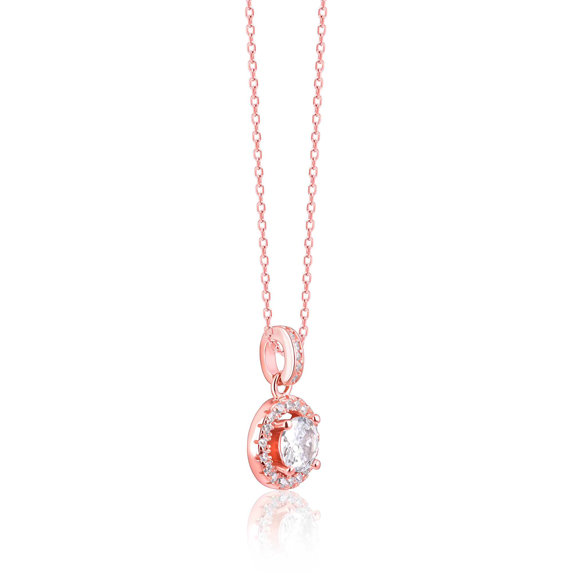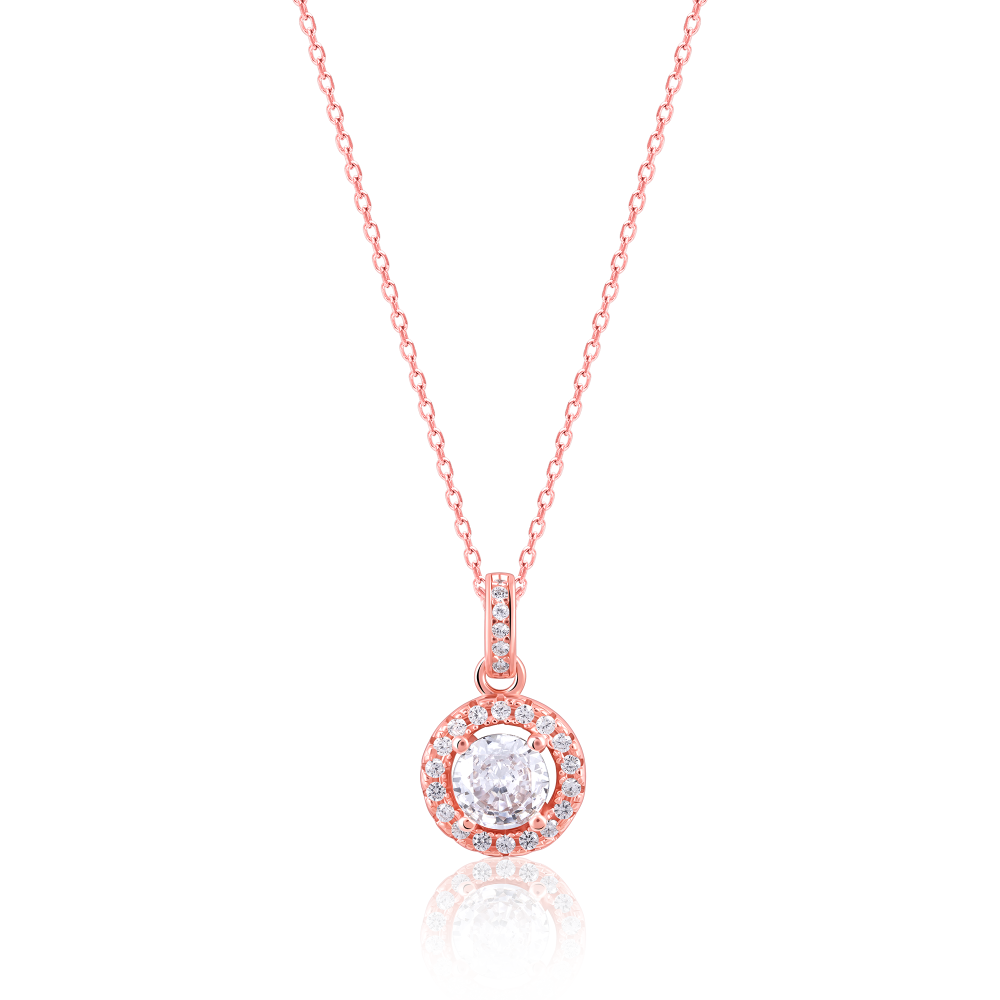 Ornate Solitaire Zircon Rose Gold Pendant with Link Chain