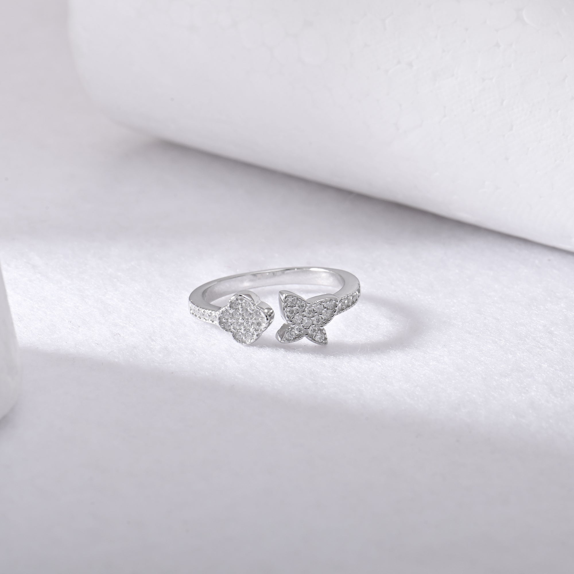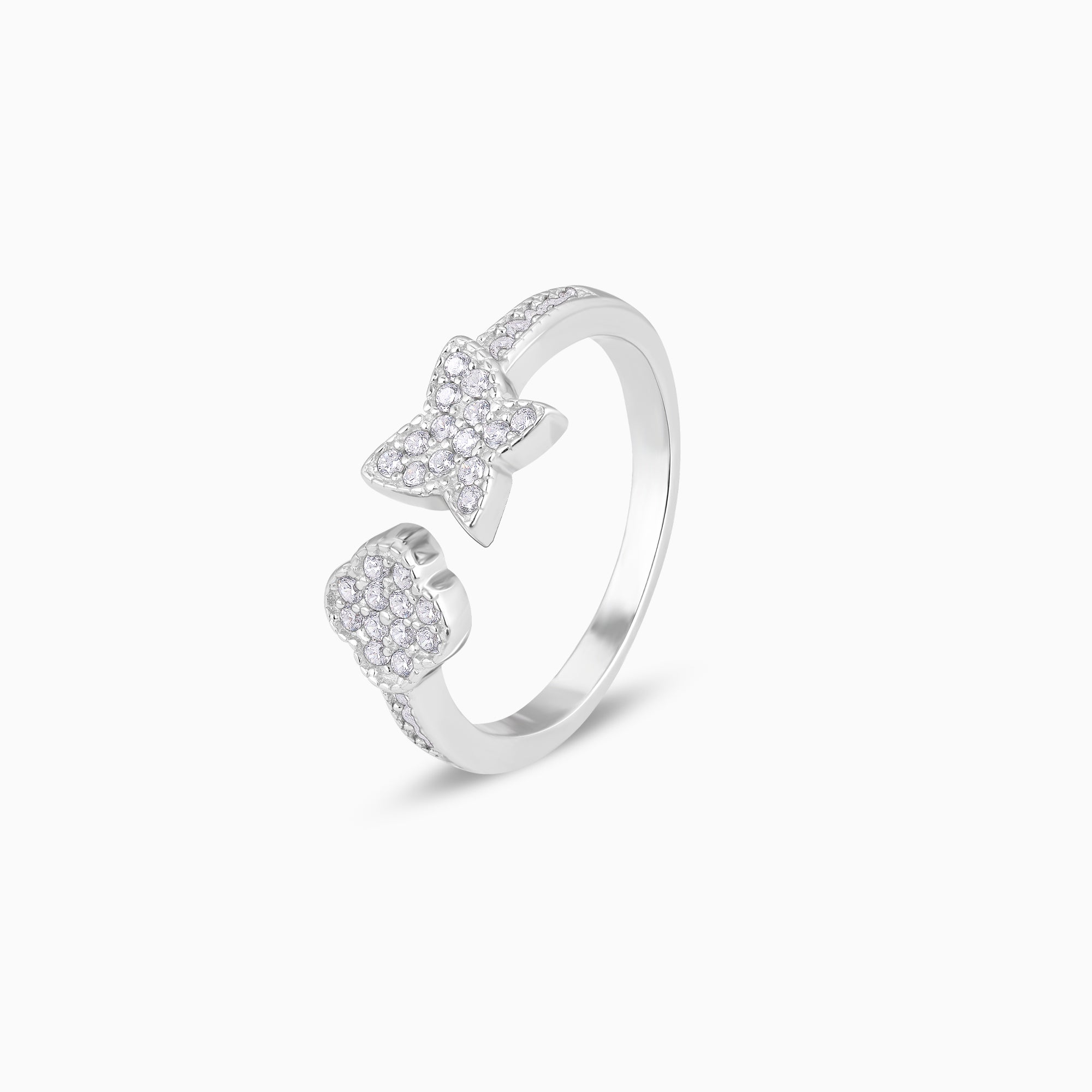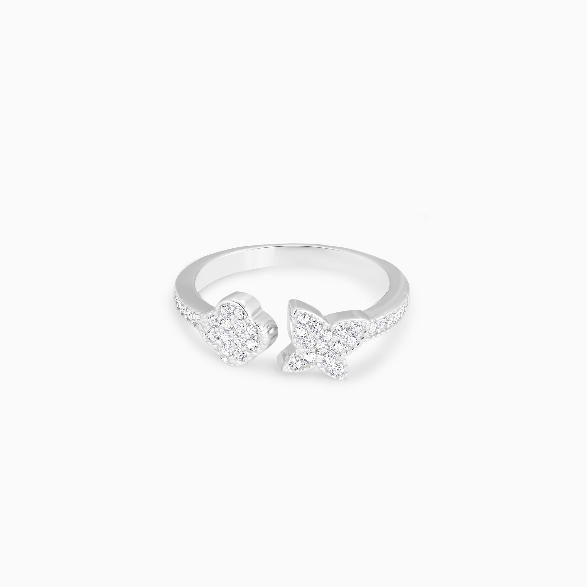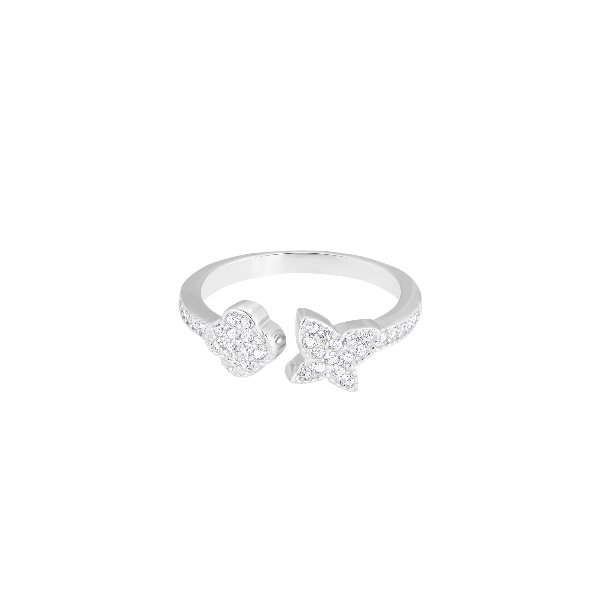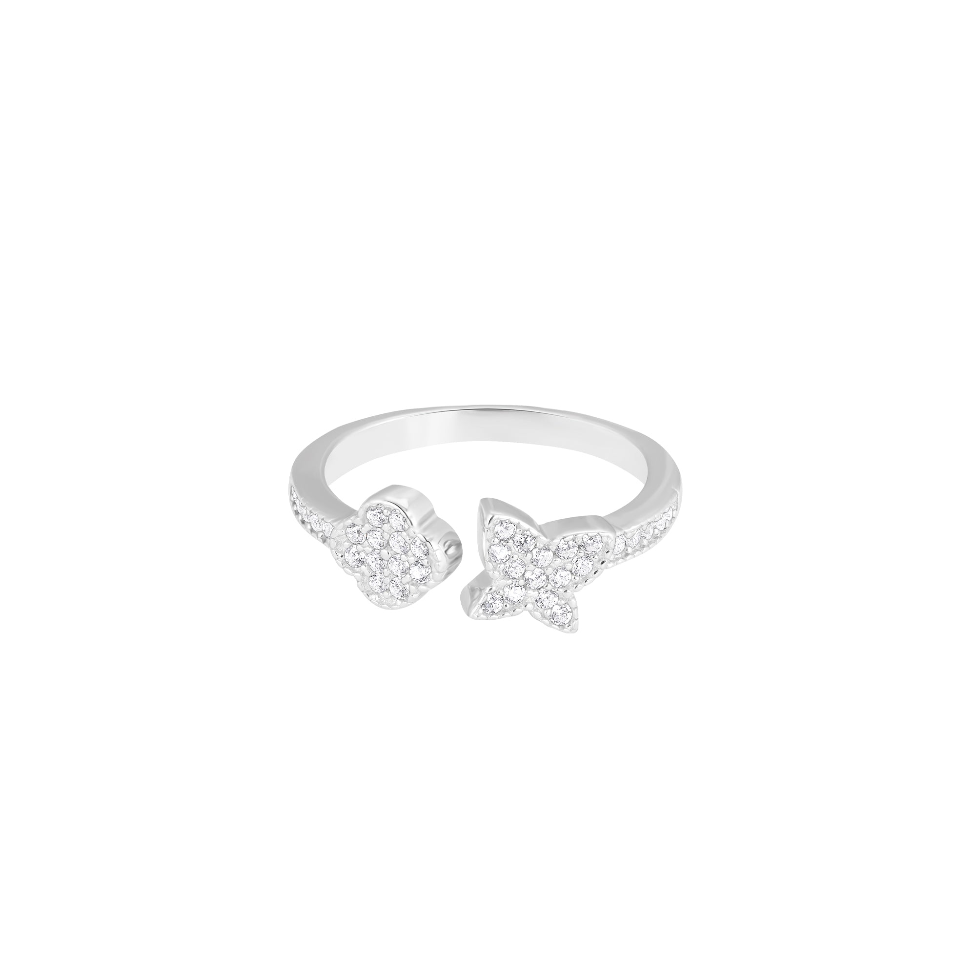 Add a touch of sparkle to your everyday look with Rachiva's Petite Floral Silver Ring. This 925 sterling silver ring showcases two beautiful flower designs adorned with studded Zircon stones, bringing a touch of glamour to your finger. The smooth silver finish enhances the intricate details, creating a premium accessory that complements your unique style.