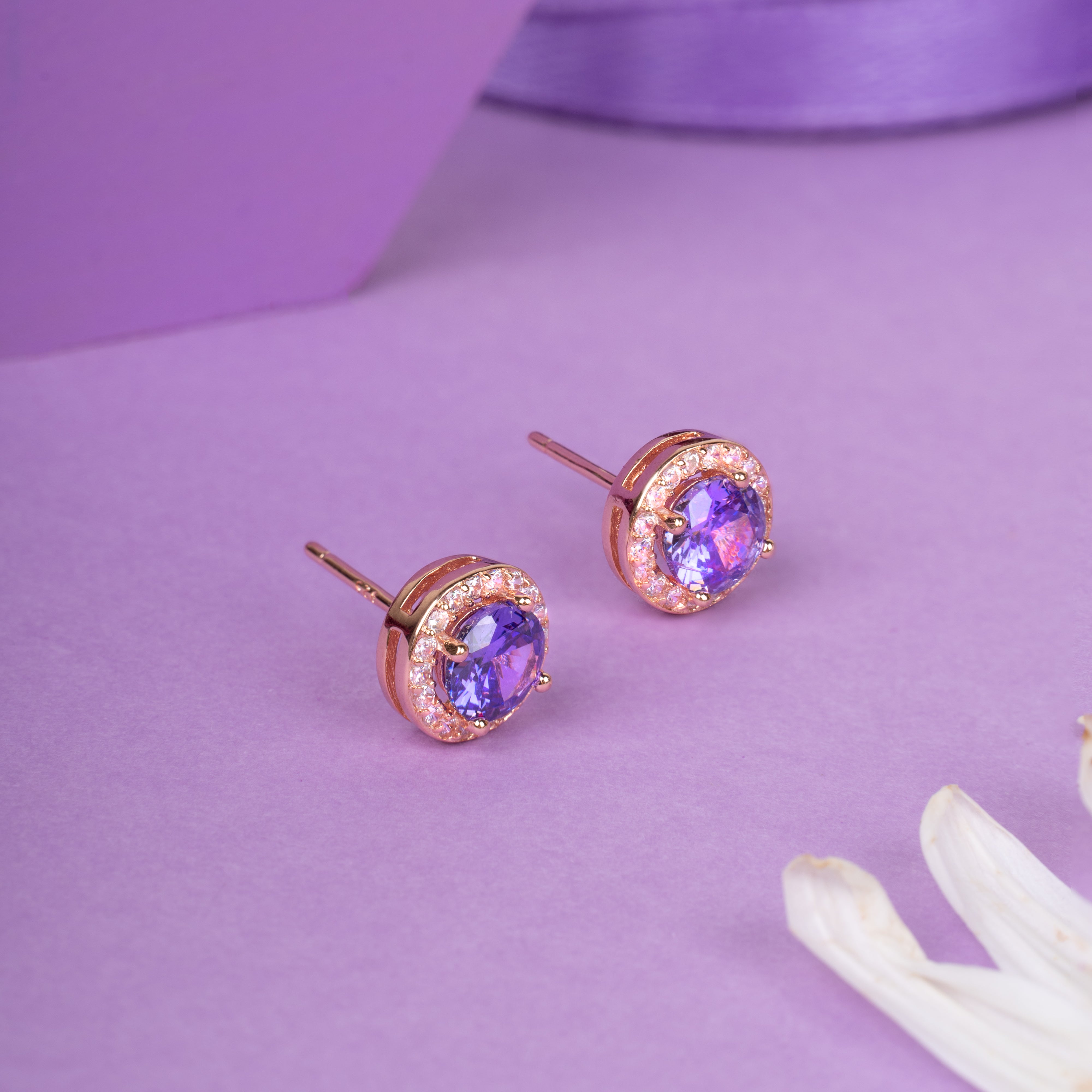 Adorn yourself with the epitome of elegance and sophistication with these exquisite Rose Gold lavender orchid zircon stud earrings. The stunning combination of purple and rose gold creates a regal aura, while the intricate design adds a touch of glamour to any ensemble.