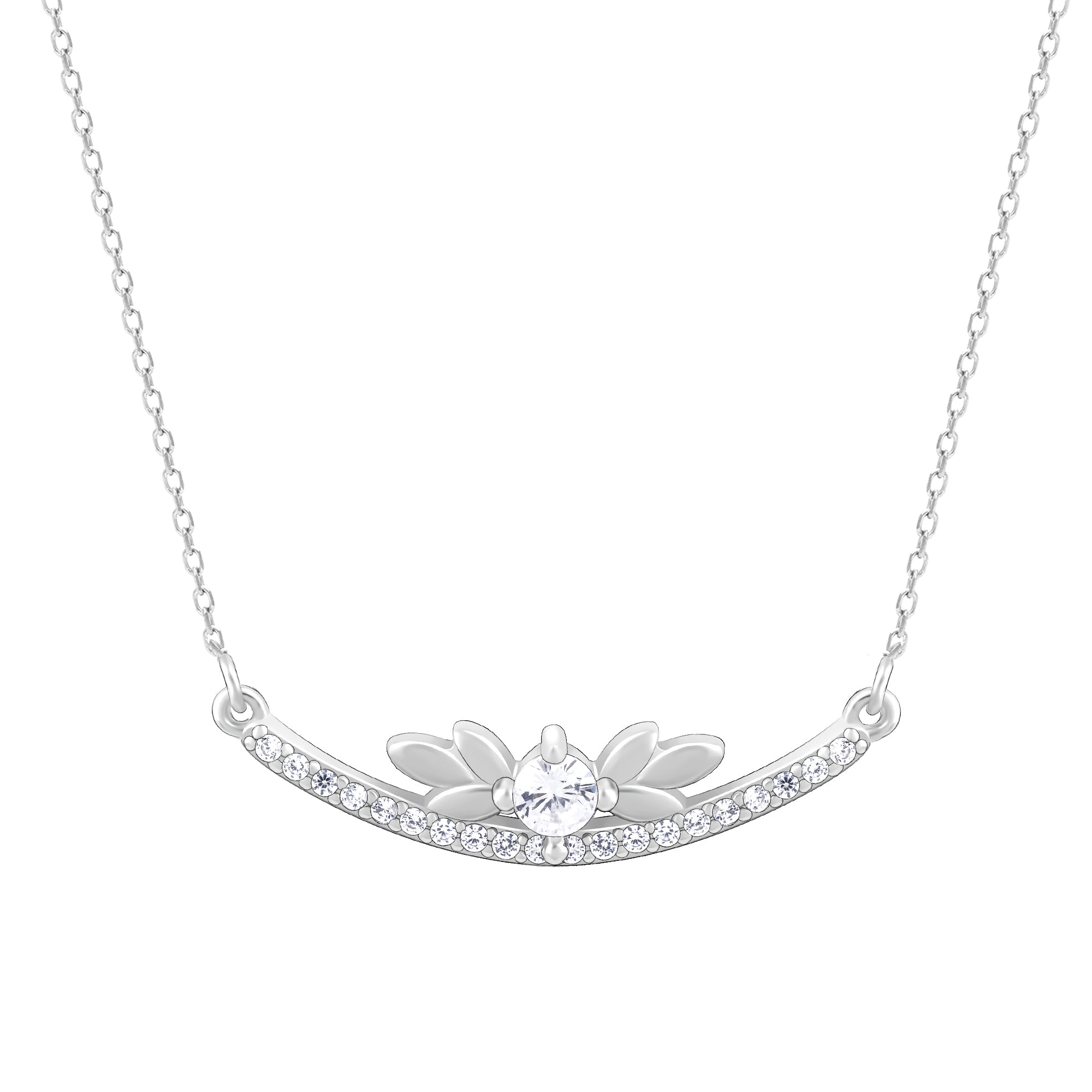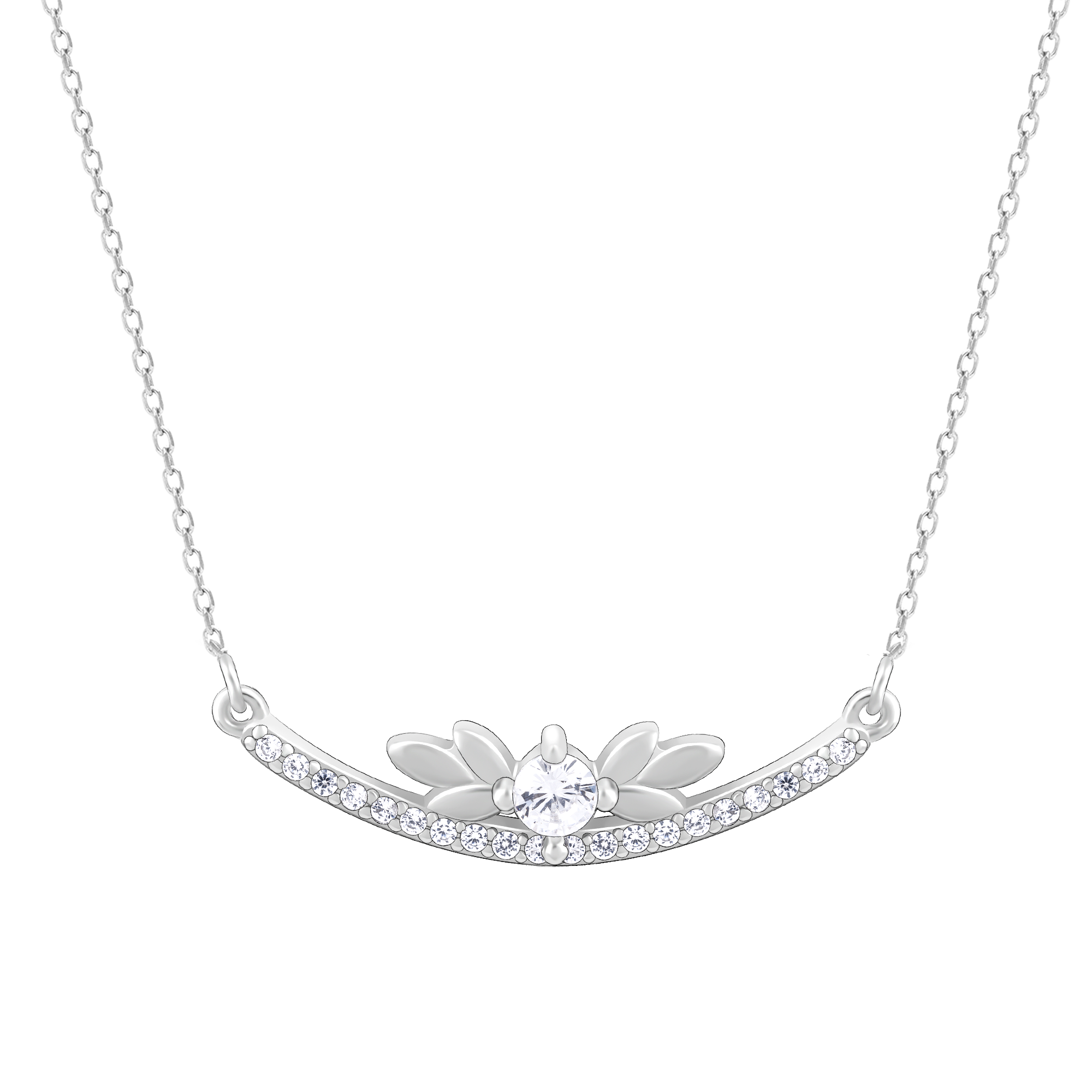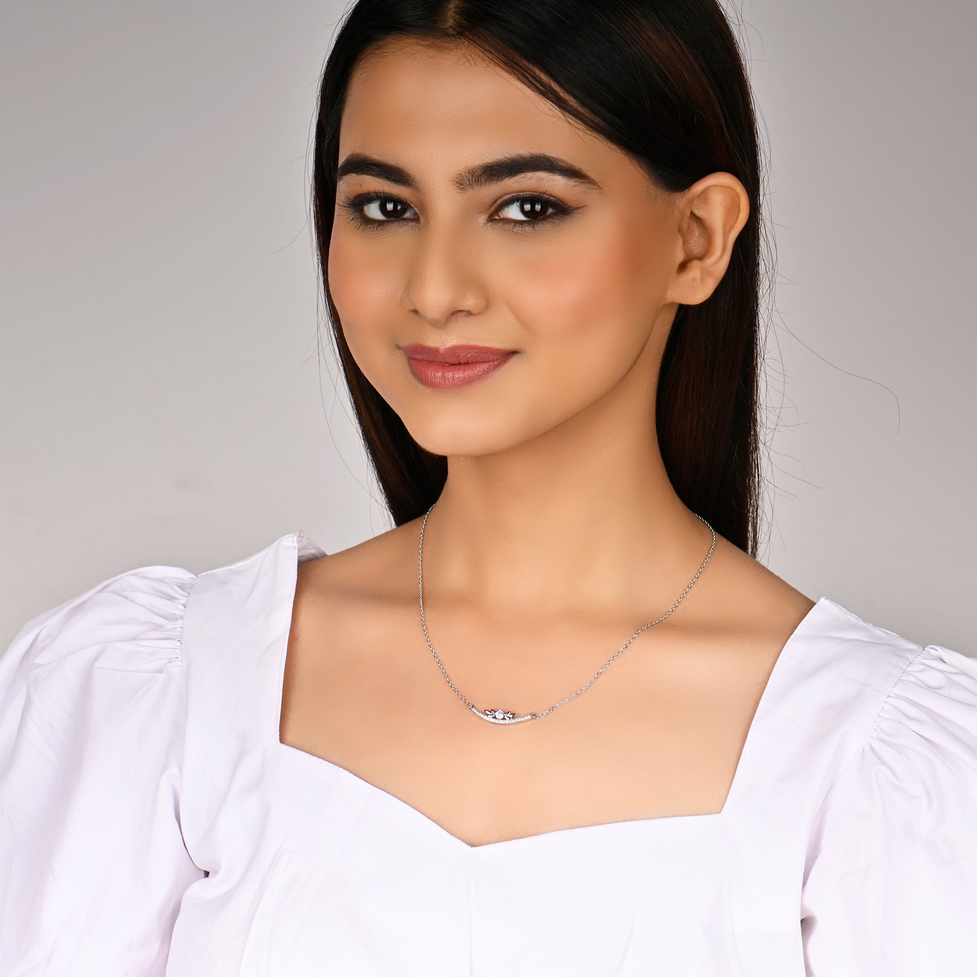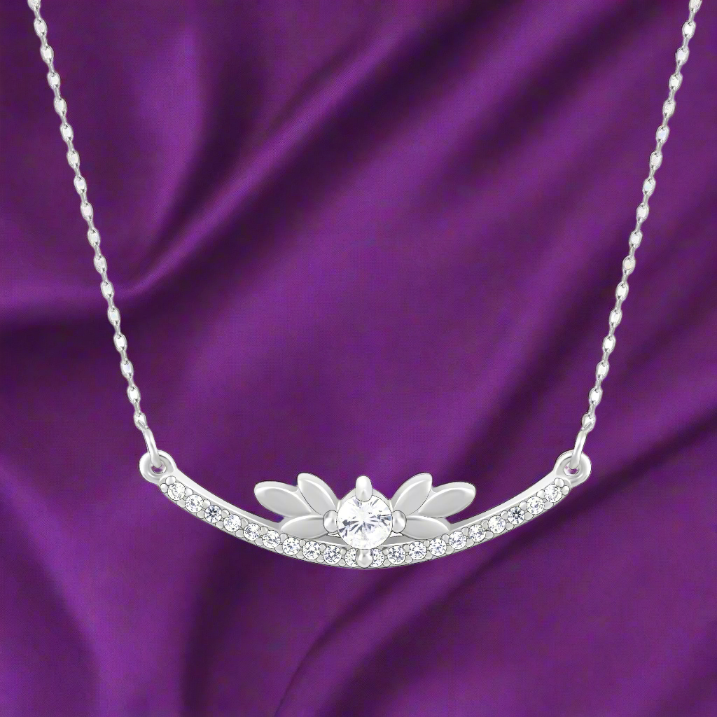 Add a touch of grace to your jewellery collection with Rachiva's 925 sterling silver Silver Arc Zircon Pendant with Link Chain. The pendant's arc shape, embellished with Zircon stones, exudes understated luxury. Delicate petals with a central Zircon stone between them add a touch of femininity, making it a perfect accessory for any occasion. Its sleek design ensures it effortlessly complements both casual and formal attire, making it an essential addition to your jewellery collection.