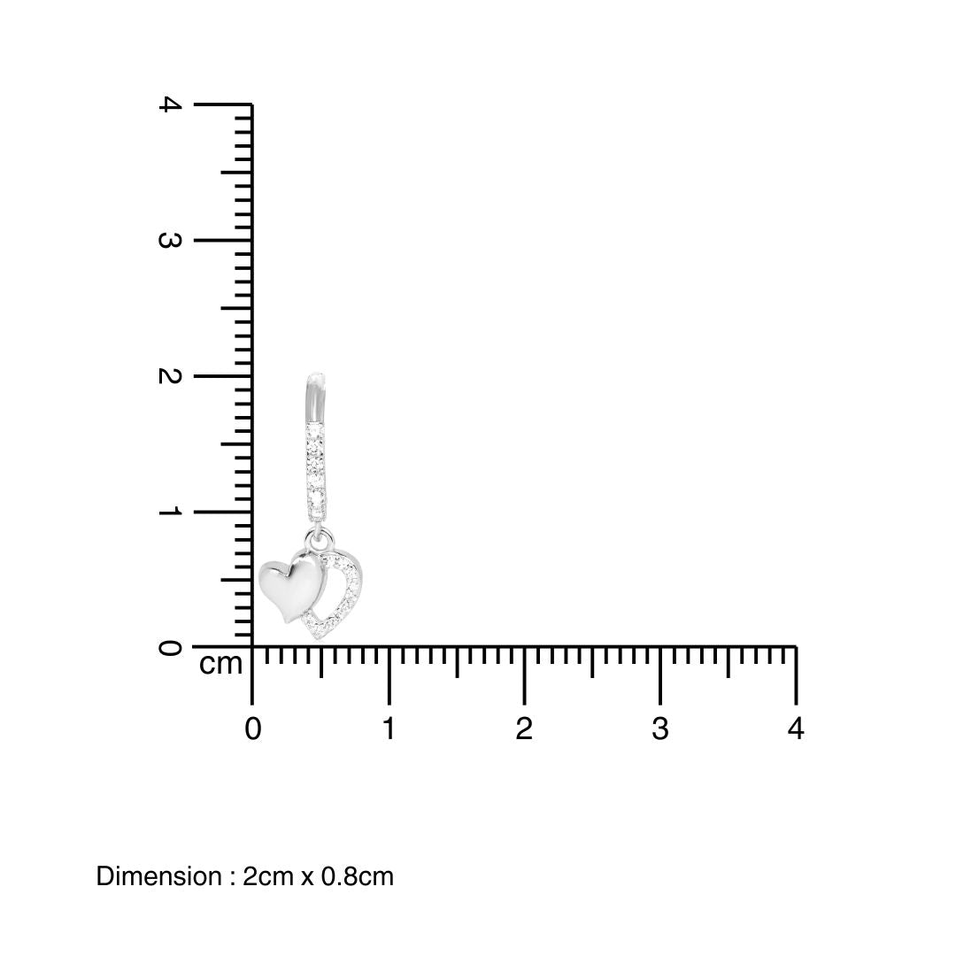 Elevate your style with these exquisite 925 Sterling Silver Hanging Heart Hoop earrings. Crafted with precision and elegance, these earrings feature two delicate hearts suspended from a silver plated hoop, creating a timeless and sophisticated look. Perfect for any occasion, these earrings will add a touch of luxury to any outfit, making them a must-have accessory for those with discerning taste.