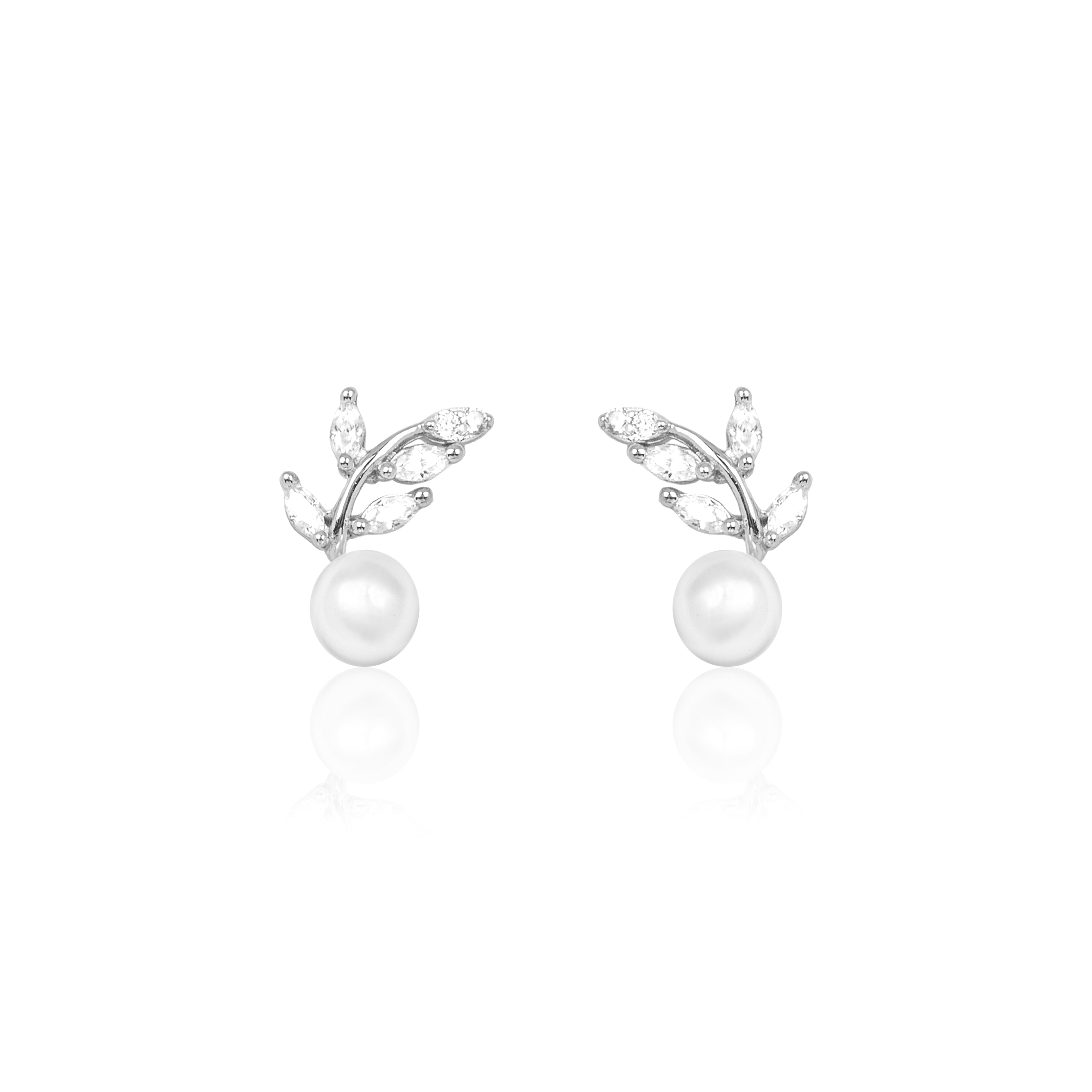Adorn yourself with elegance and sophistication with these exquisite white pearl and leaf earrings. Crafted from 925 Sterling Silver, these stunning drop studs feature lustrous pearls delicately framed by intricate silver leaves, creating a timeless and luxurious accessory that will elevate any outfit to new heights of glamour. Perfect for adding a touch of refinement to any ensemble, these earrings are a must-have for those who appreciate the finer things in life.