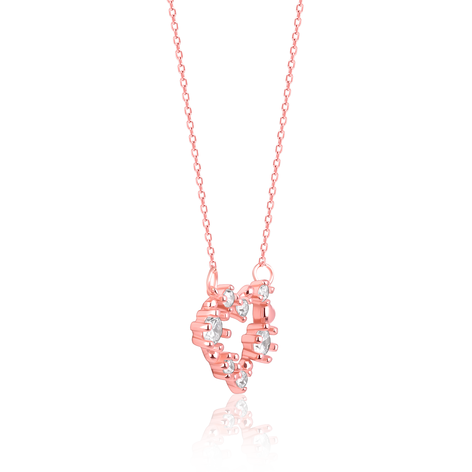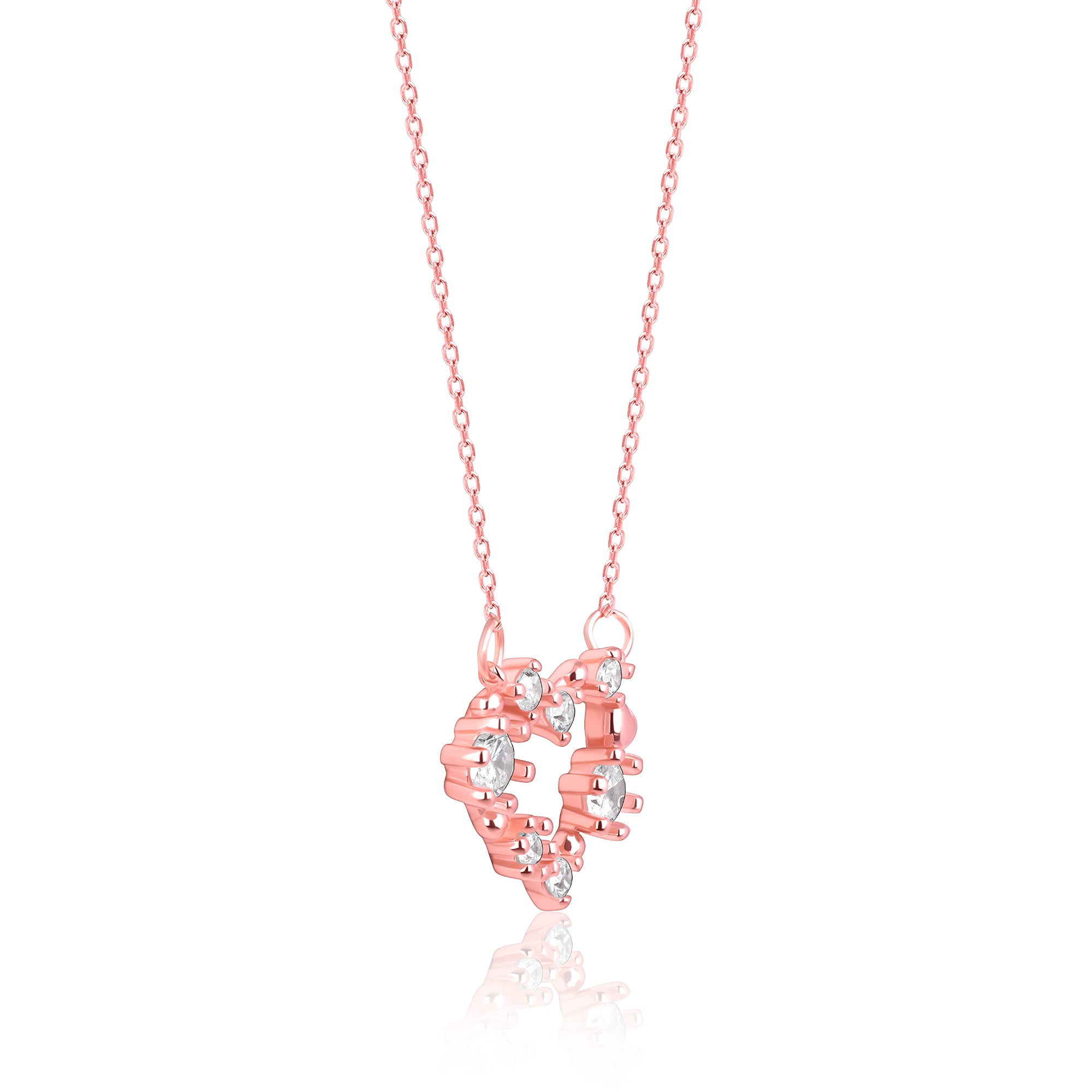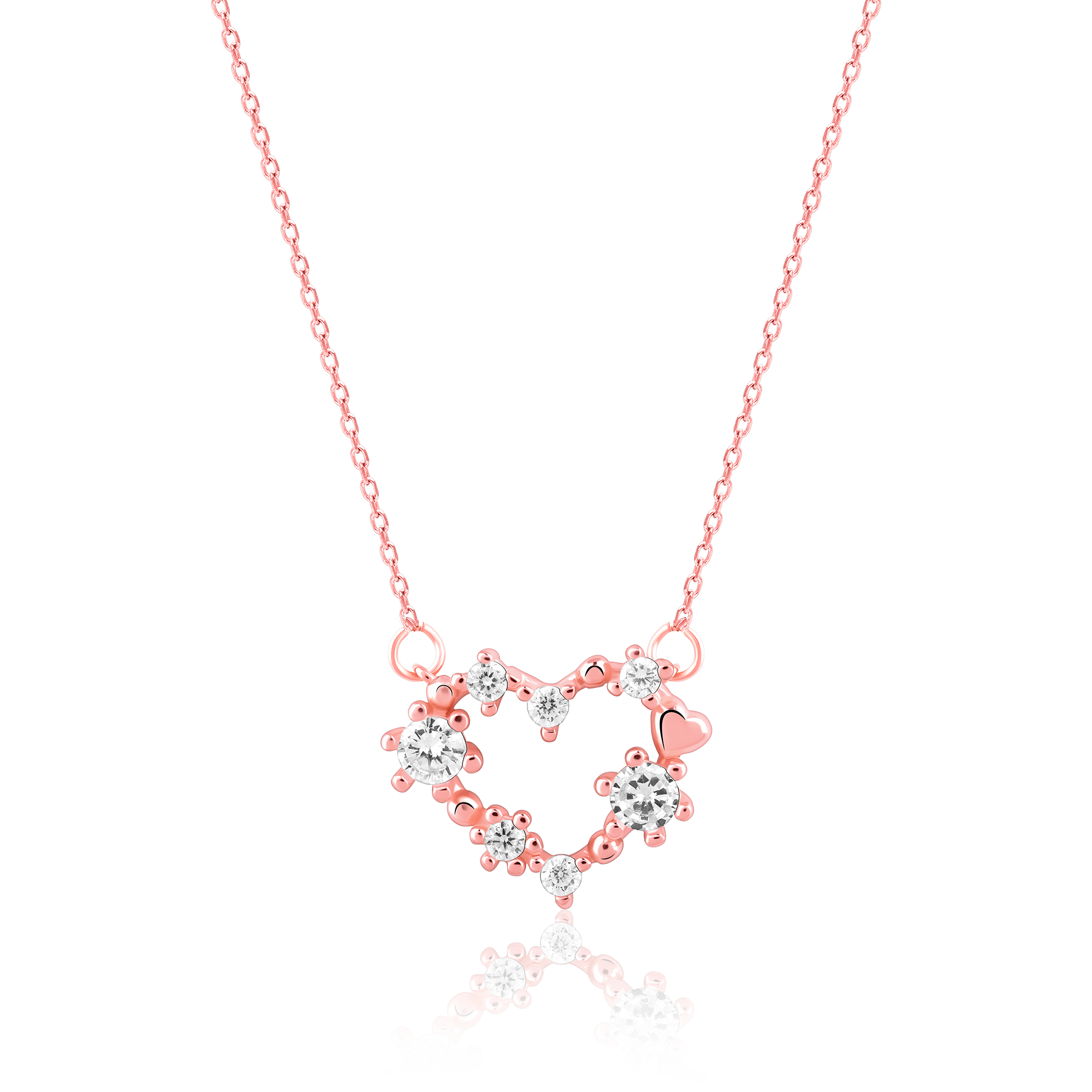 Silver Romantic Heart Rose Gold Pendant with Link Chain