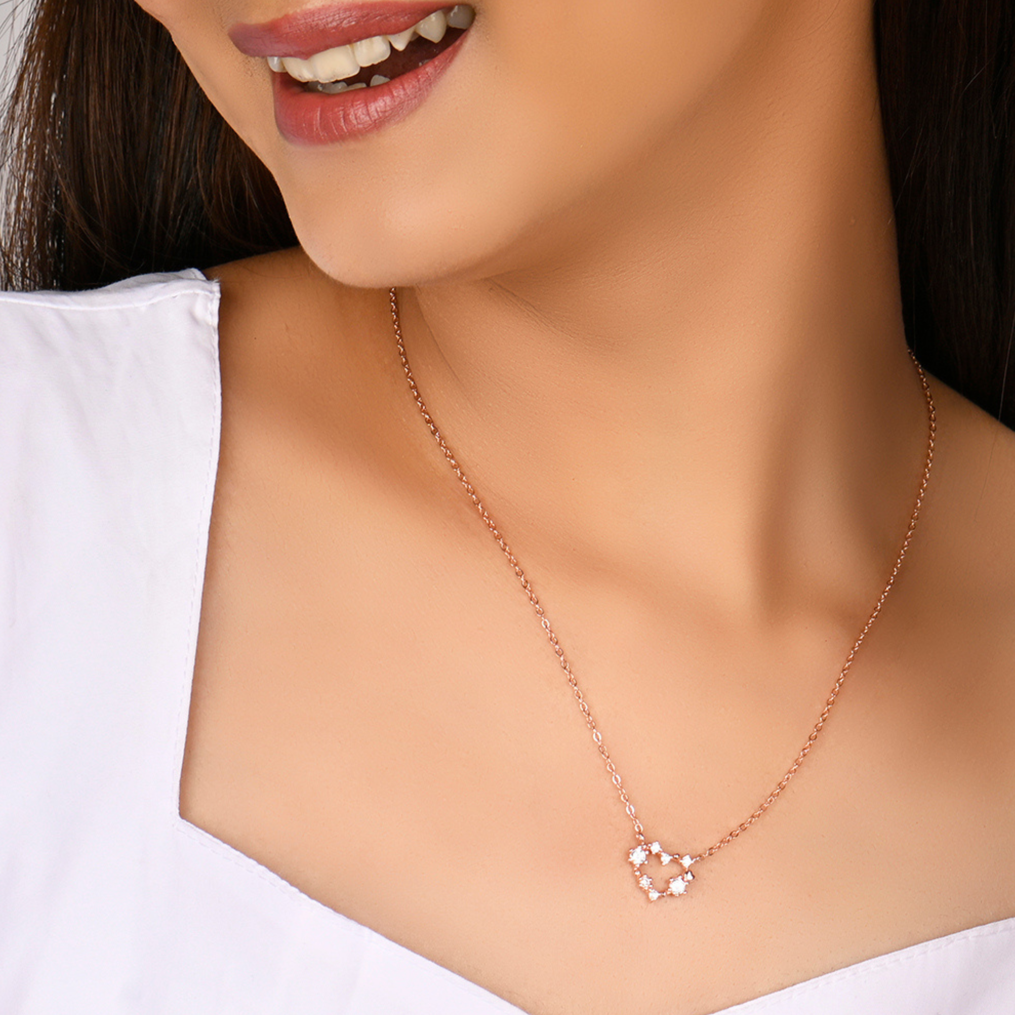 Discover the epitome of romantic sophistication with Rachiva's Silver Romantic Heart Rose Gold Pendant with Link Chain. Immerse yourself in the exquisite beauty of this heart-shaped pendant, adorned with a dazzling arrangement of big and small Zircon stones, creating a stunning interplay of light and elegance. Create a lasting impression by pairing this pendant with a plunging neckline or let it delicately rest on your collarbone for a subtle touch of glamour.
