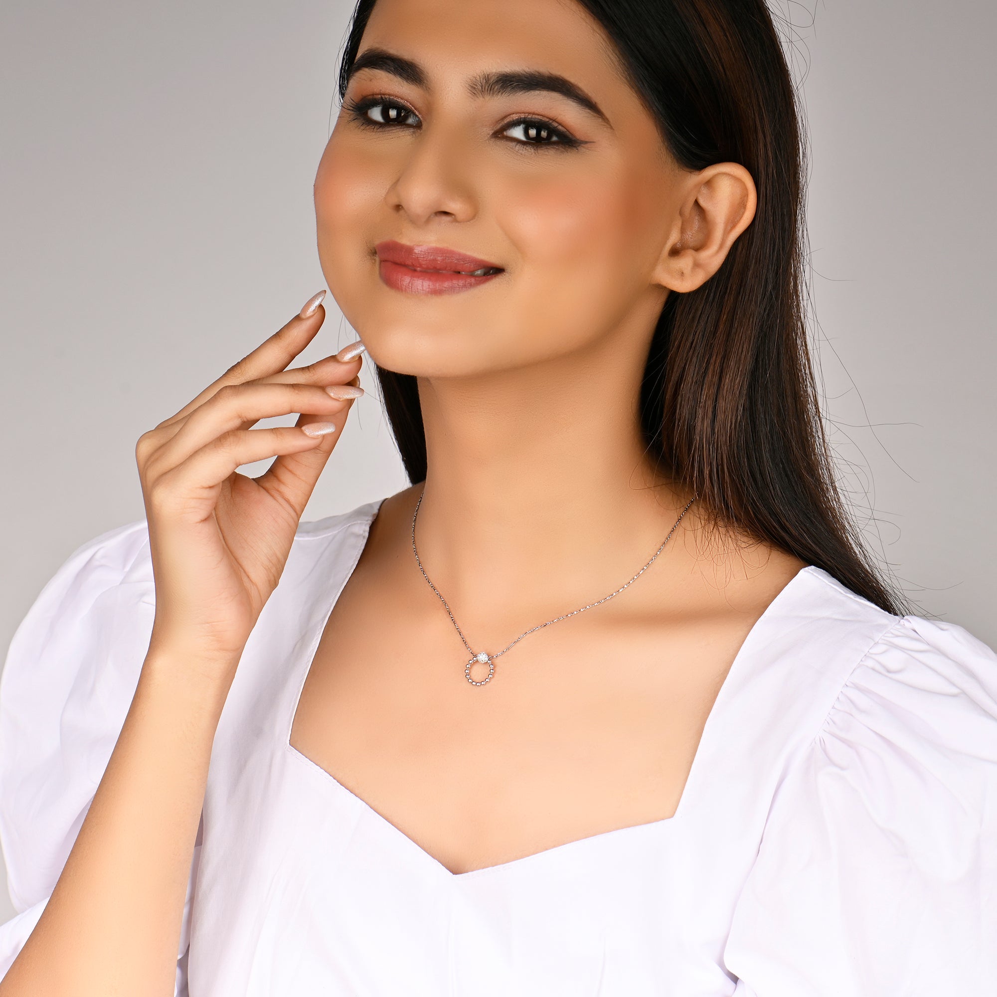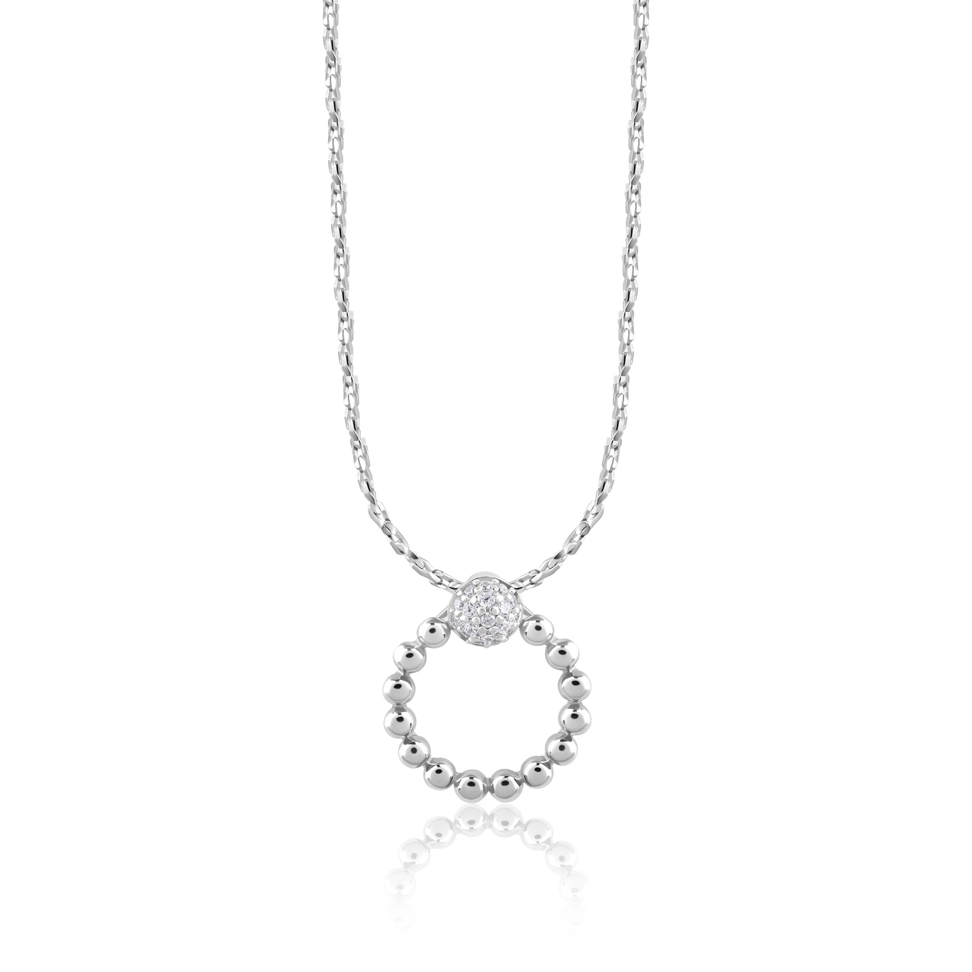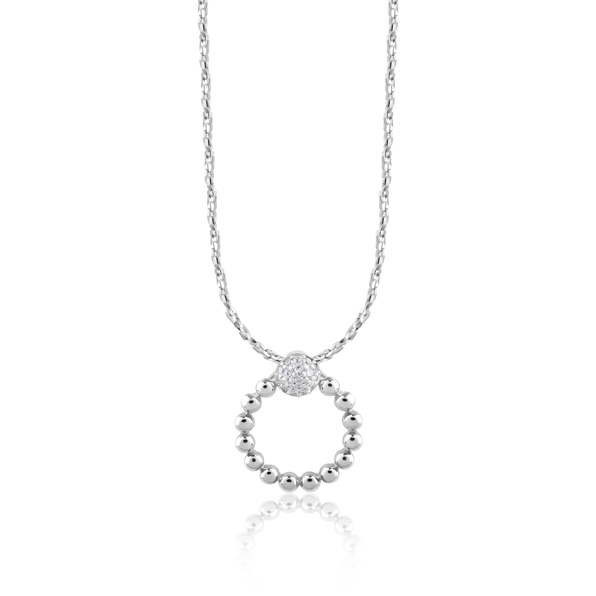 A timeless accessory that combines simplicity with a touch of glamour - Rachiva's 925 sterling silver Silver Spherical Pendant with Chain. This pendant chain is designed to make a statement with its unique circular shape, created using delicate silver balls that exude an aura of elegance. For a contemporary twist, mix and match it with other Rachiva silver jewellery pieces.