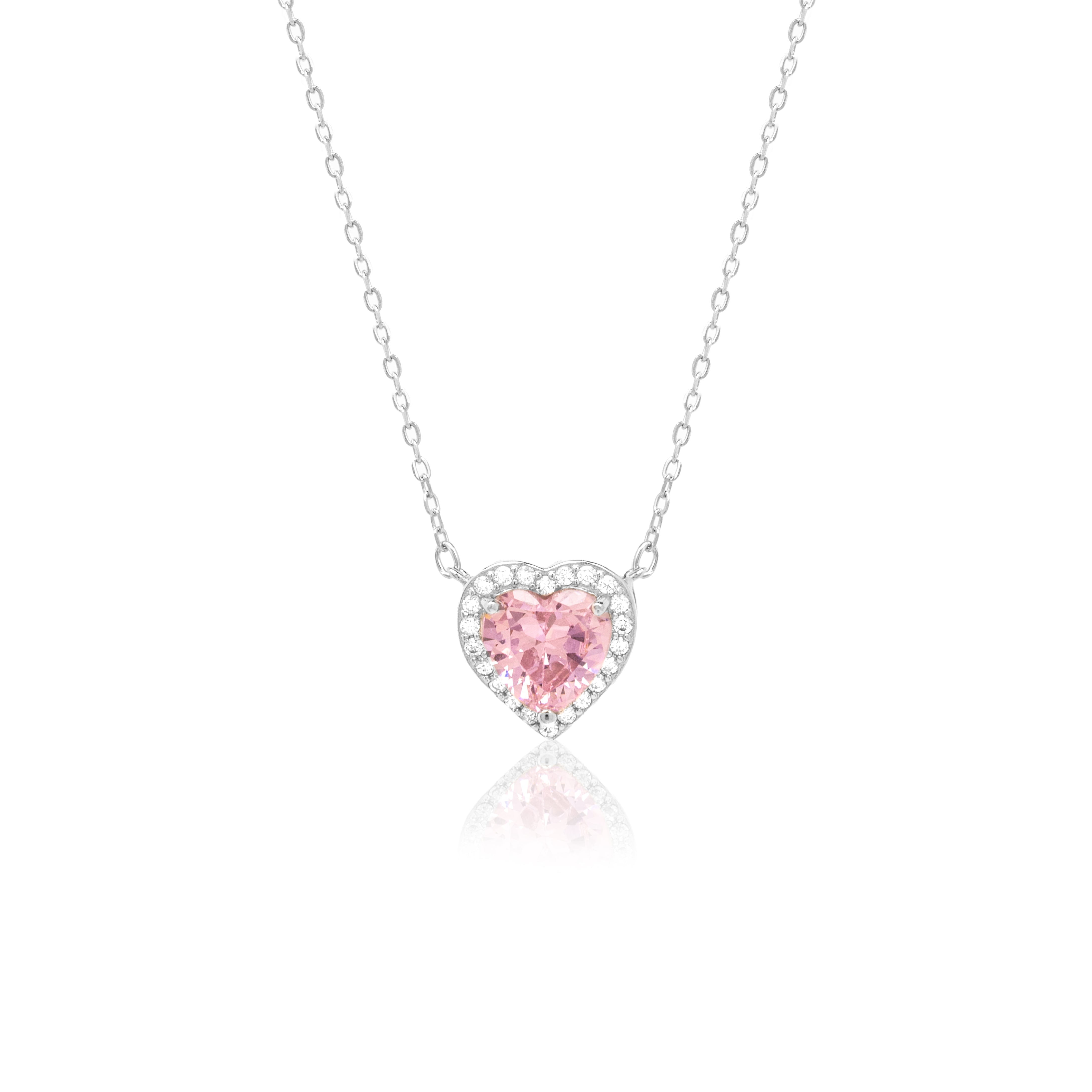 Adorn yourself with elegance and sophistication with our exquisite pink heart-shaped necklace, crafted from 925 Sterling Silver. The dazzling pink-colored heart-shaped stone is encircled by shimmering zircons, adding a touch of luxury and glamour to any outfit. Elevate your style and make a statement with this stunning piece that exudes timeless beauty and grace.