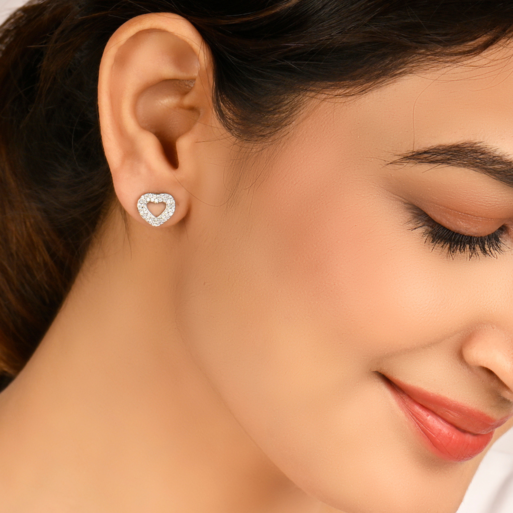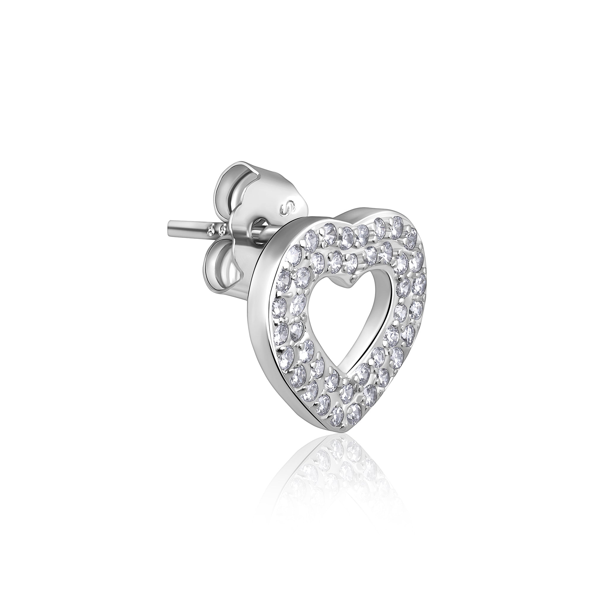 Sparkling Heart Silver Stud Earrings